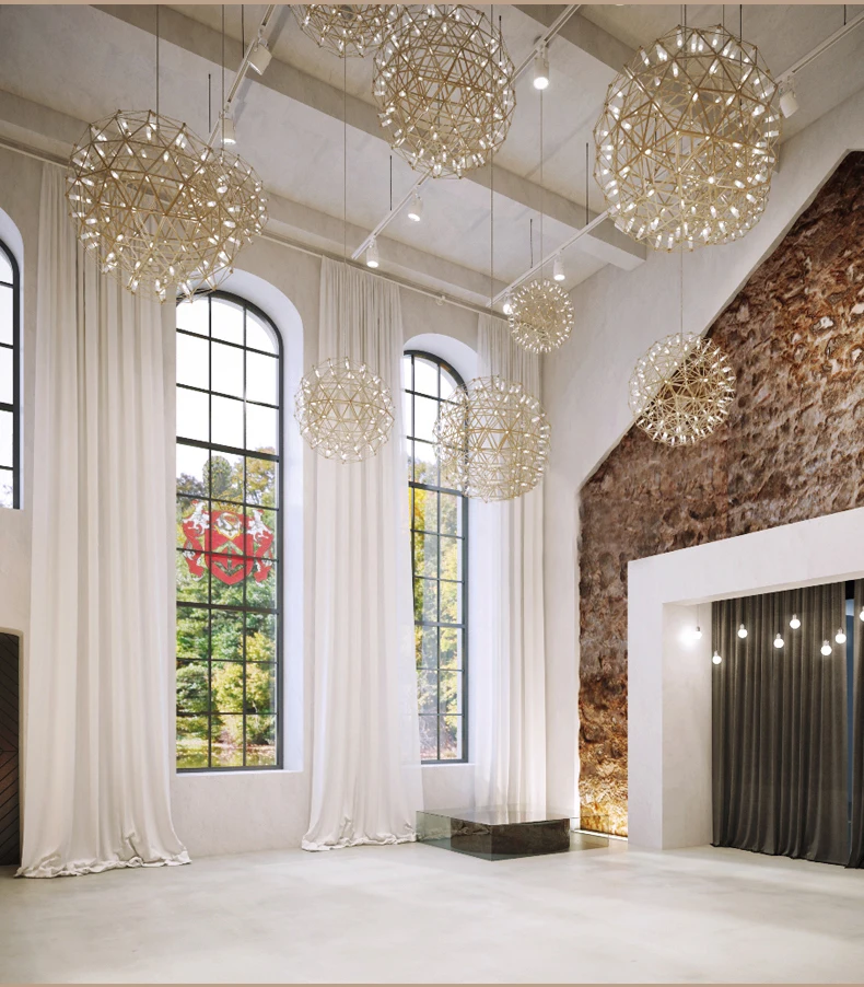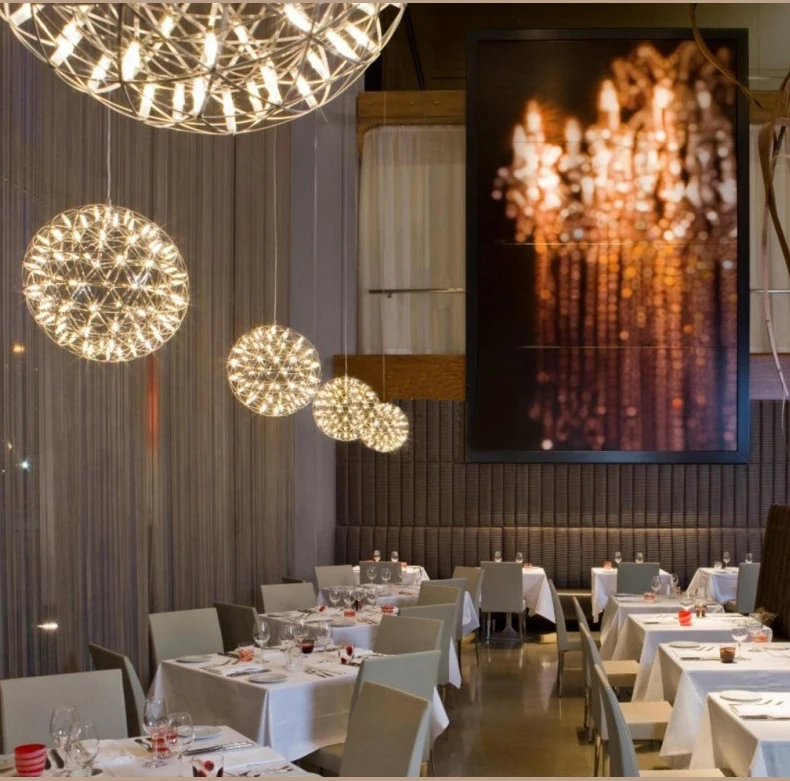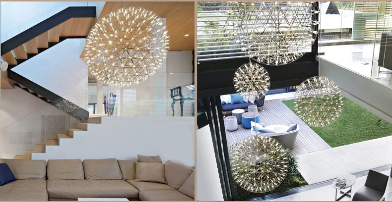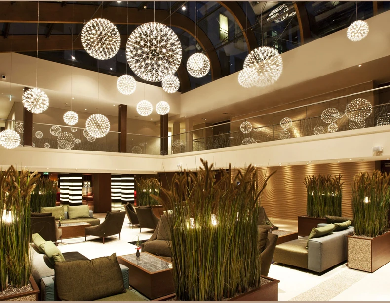 Современная люстра из нержавеющей стали 110-240 В со светодиодной лампой в виде шара фейерверка подходит для чердака, лобби и домашнего декора