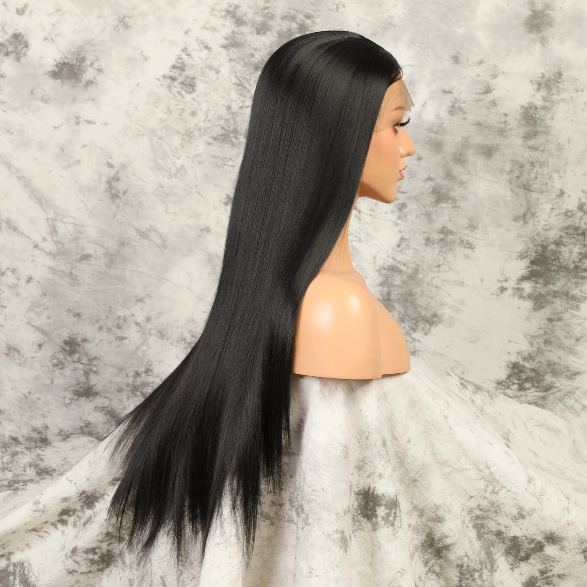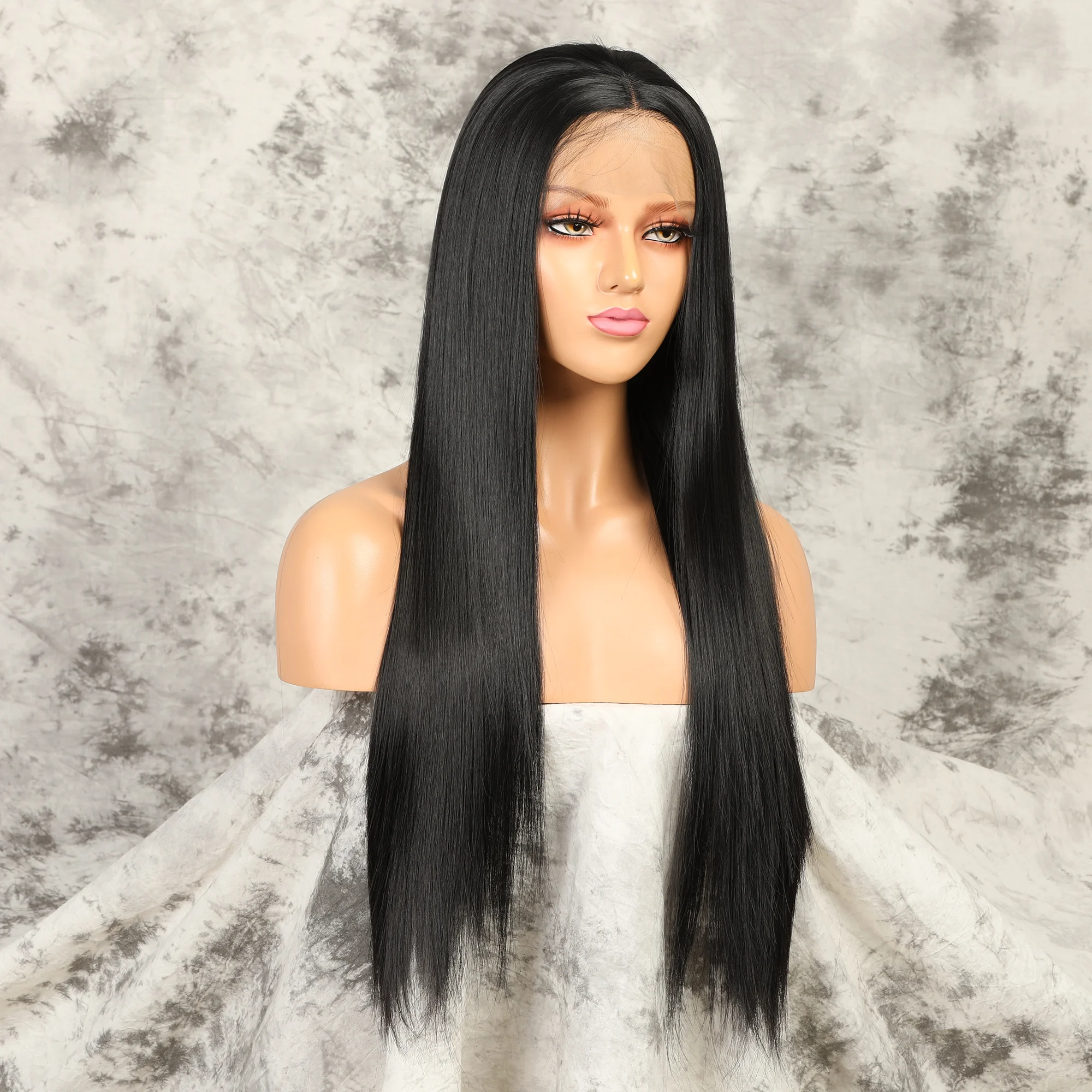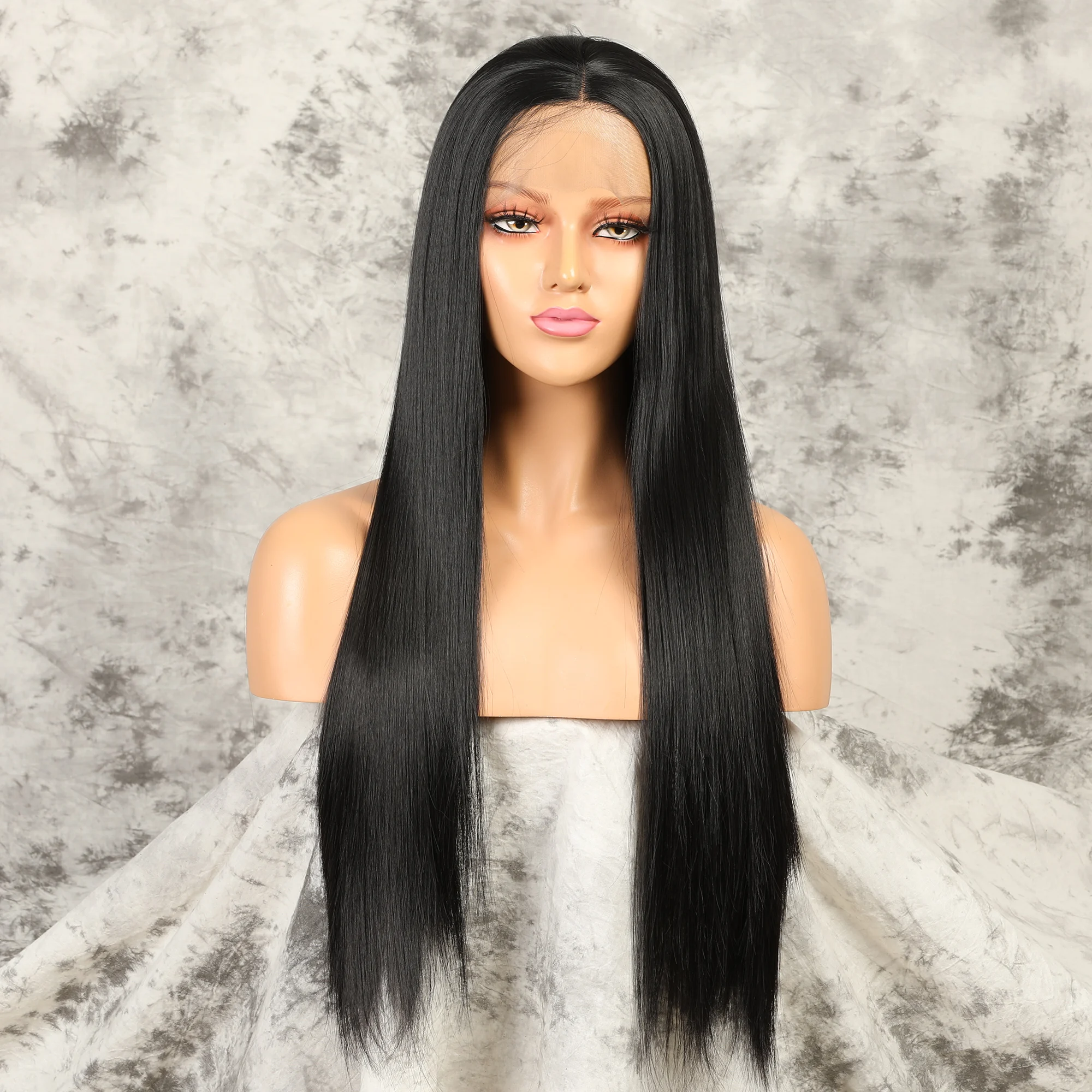 Парик женский Синтетический на сетке, длинный, прямой, из термостойкого волокна, натуральная плотность, черный