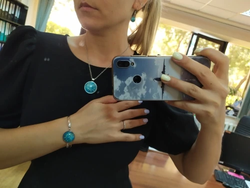 Подарок для моей мамы, которая находится в ожидании, и эти серьги выделяют его синие глаза.