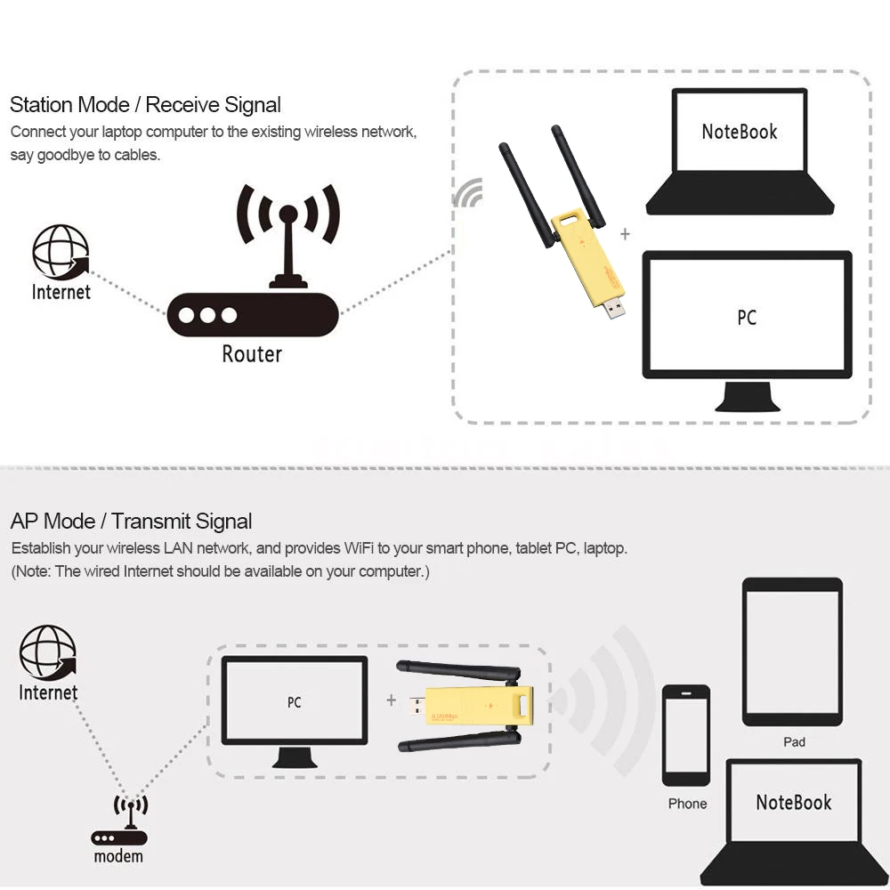 Характеристика:Этот usb-адаптер имеет высокоскоростную беспроводную скорость передачи данных 1200 Мбит/с, что обеспечивает более сильный сигнал Wi-Fi, чтобы помочь вам гладко работать в Интернете.11AC двухчастотный (2,4 ГГц/5,0 ГГц), и вы можете выбрать различные частоты Wi-Fi в разных ситуациях. Если вы хотите дальней дистанции и широкой зоной Wi-Fi, вы можете выбрать 2,4 ГГц частоты, или вы можете включить его до 5,0 ГГц Частотный в том случае, если вы хотите высокого качества и невмешательства Wi-Fi.Работает с любыми Wi-Fi роутерами --- с помощью AC600 AC беспроводного адаптера, вы можете обновить ваш ПК, ноутбук или Mac для работы с последним AC WiFi роутером для более быстрой скорости и расширенного диапазона.Легкое подключение и простота установки --- беспроводная карта также интегрирует программу беспроводной конфигурации, легко установить. И поддерживает функцию мягкого AP, позволяя быстро настроить беспроводную локальную сеть.Гарантия и совместимость ---- 2 года бесплатной гарантии возврата или замены, пожизненная техническая поддержка. Беспроводной сетевой адаптер USB Модель: Realtek 8812AU 8812BU ChipestСупер Скоростной порт USB 3,0-до 10х быстрее, чем USB 2,0Поддержка стандарта 802.11ac-следующего поколения Wi-FiОбратная совместимость с продуктами 802.11a/b/g/nСверхбыстрый AC1200(867 + 300 Мбит) Скорость беспроводного соединения с 802.11acМаксимальная скорость передачи данных до 5 ГГц 867 Мбит/сек или 2,4 ГГц 300 Мбит/сДвухдиапазонные соединения для передачи hd-видео без задержек и игрПоддержка Windows 10/8/7/XP 32/64 бит, MAC OS 10,6/10,7/10,8/10,9/10,10, Linux, но он не совместим с kali linux. Посылка: Тип A черный1 х USB WiFi адаптер2 x Антенна1 x CD драйвер Веб-сайт для скачивания драйверов (без AP):Https://www.realtek.com/en/component/zoo/category/rtl8812bu-software Система Win10 в CD: с функцией AP Тип B желтый1 х USB WiFi адаптер2 x Антенна1 x CD драйвер