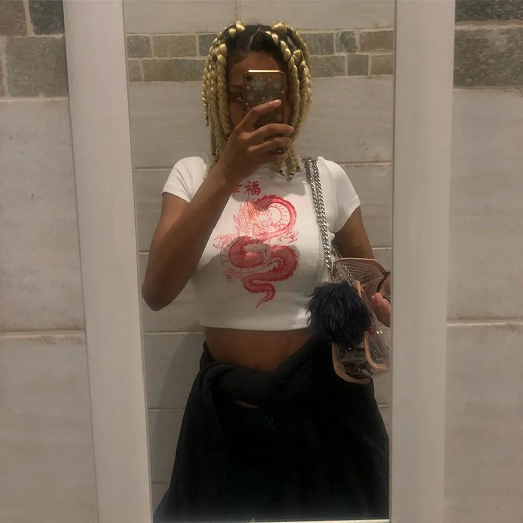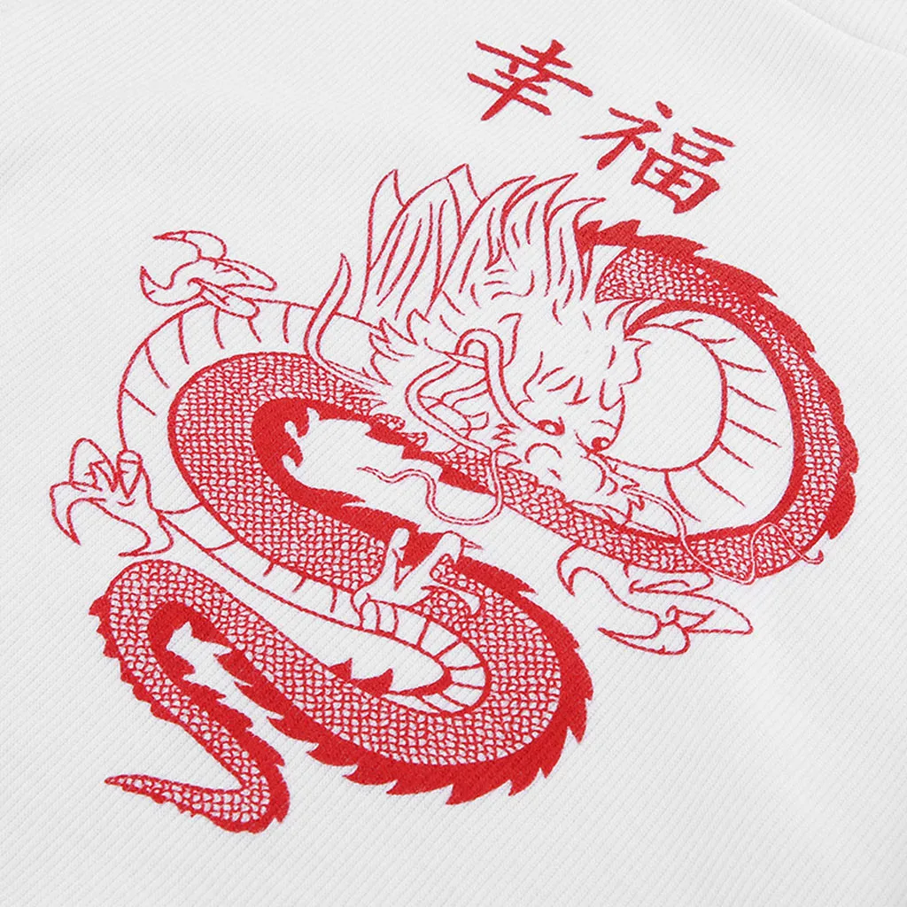 Женская Повседневная футболка # Z15, белый укороченный топ с китайским рисунком дракона, уличная одежда