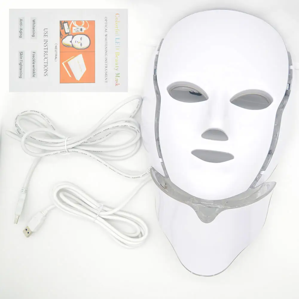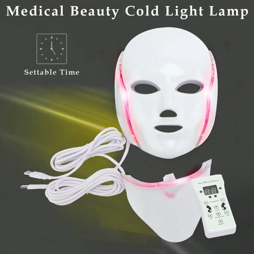 7 цветов светодиодный светильник маска для лица шеи кожи микротоковый уход фотон спа Лечение Красота затягивающее устройство против морщин, Акне терапия