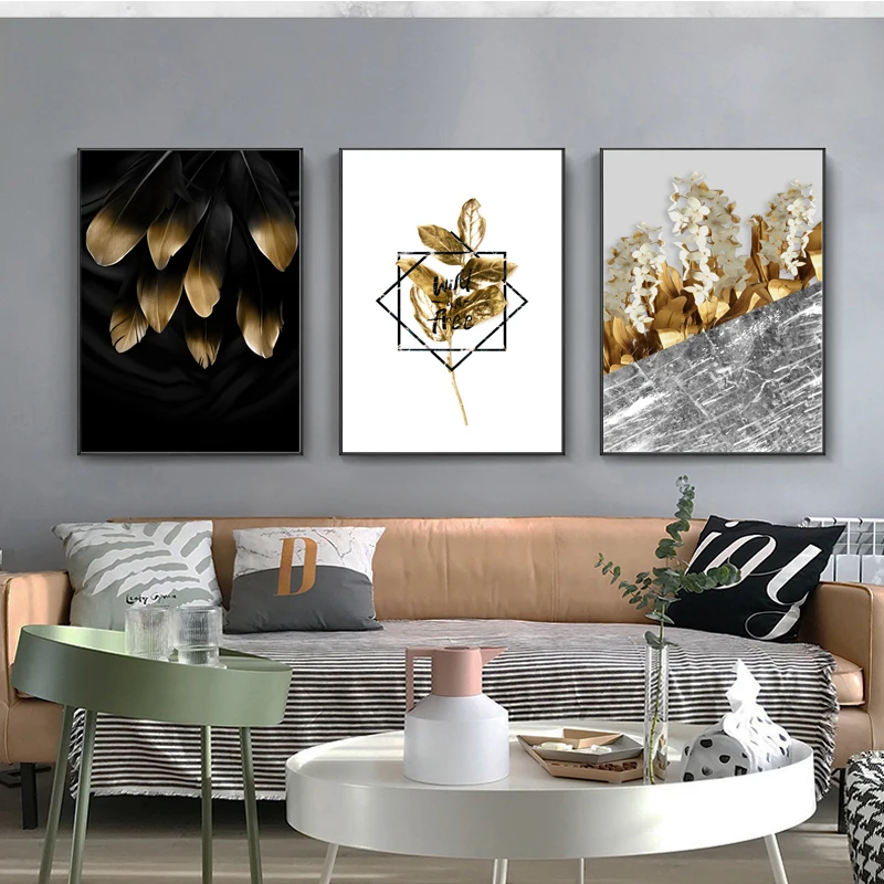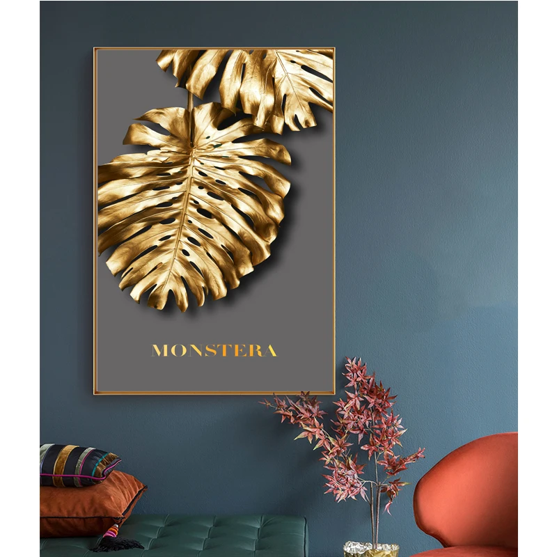 Постер с абстрактными золотыми листьями и цветами, Настенная картина с изображением монстеры, Картина на холсте, скандинавский Декор для дома, декор для гостиной