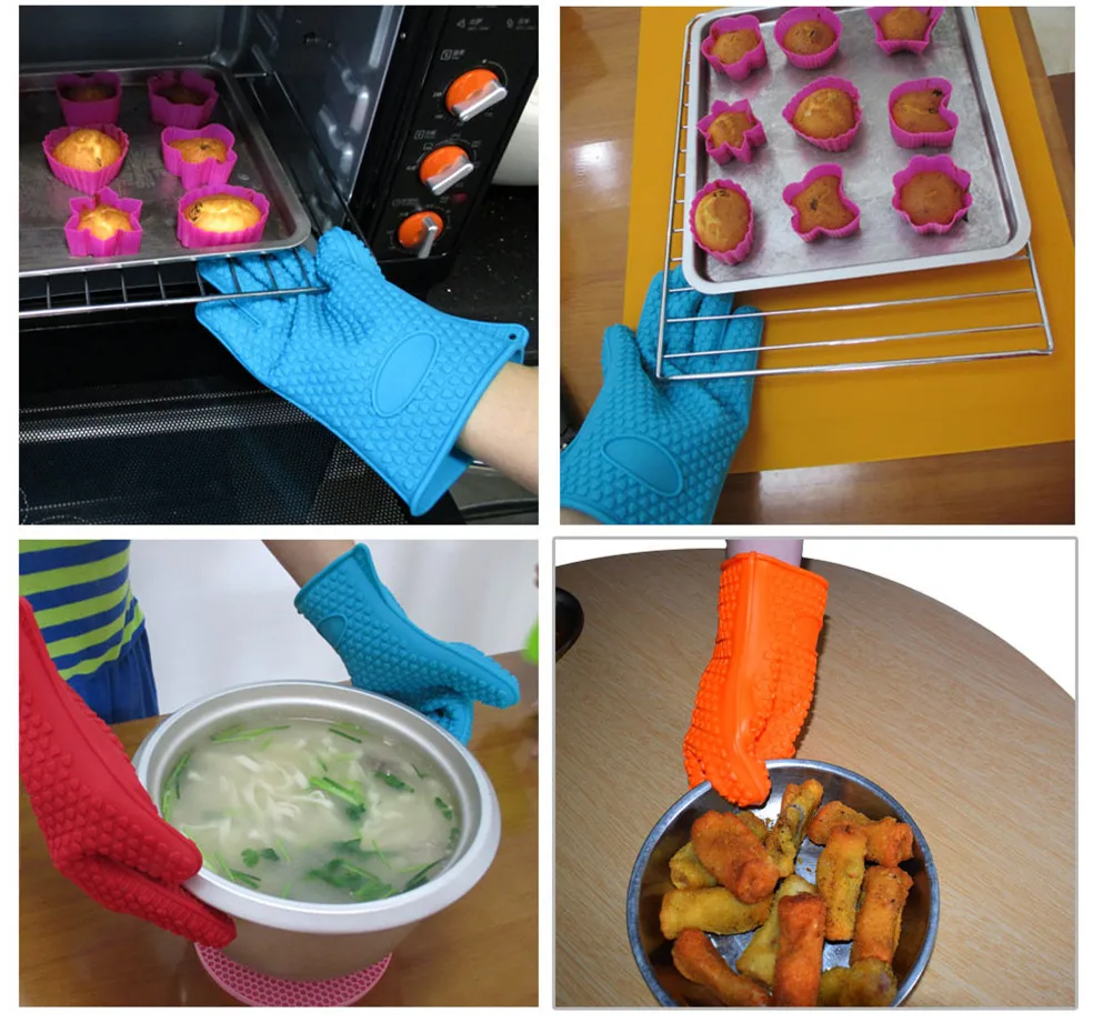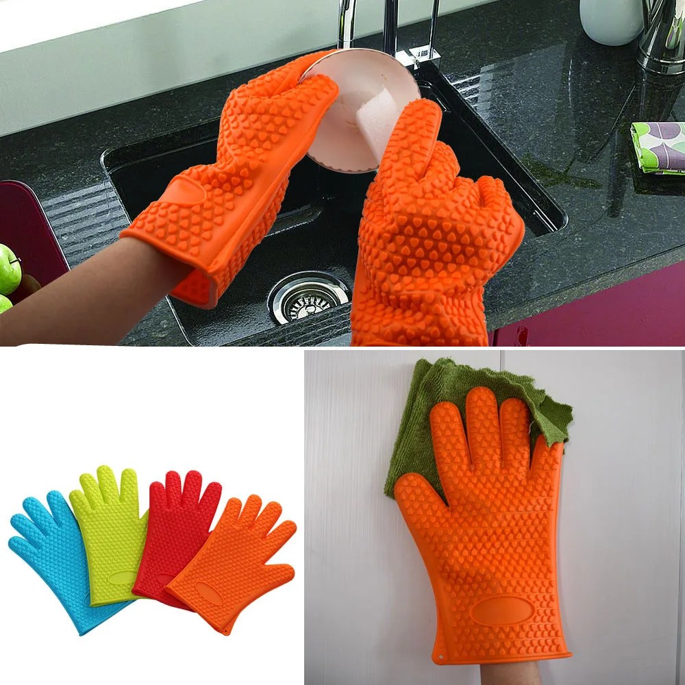 Кухонные термостойкие силиконовые перчатки, держатель для посуды для духовки перчатки для выпечки, барбекю, кулинарии, 1 пара