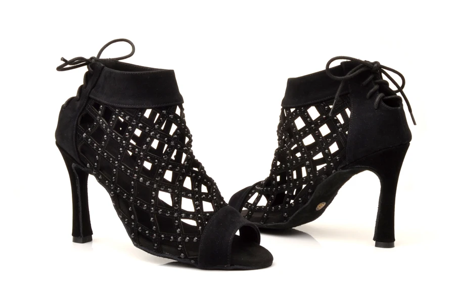 Женские туфли для латиноамериканских танцев, черные, стразы