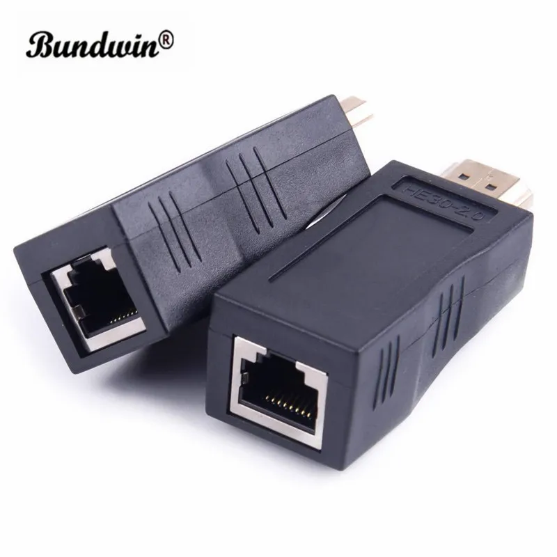 Bundwin 1 пара HDMI-совместимый удлинитель 4K 1,4 30M удлинитель для RJ45 через Cat 5e6 сетевой LAN Ethernet адаптер для HDTV HDPC