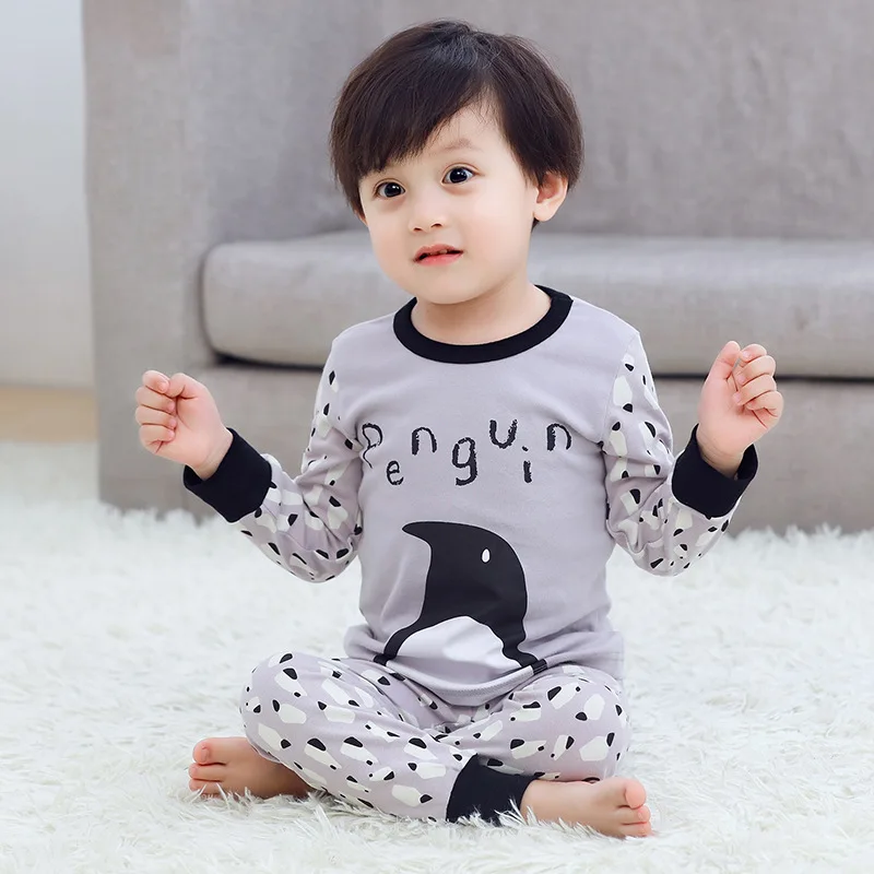 Детский хлопковый пижамный комплект, зимняя одежда для маленьких де...