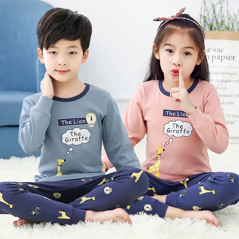 Осенне-зимний Пижамный костюм для девочек, пижама для мальчиков, Хл...