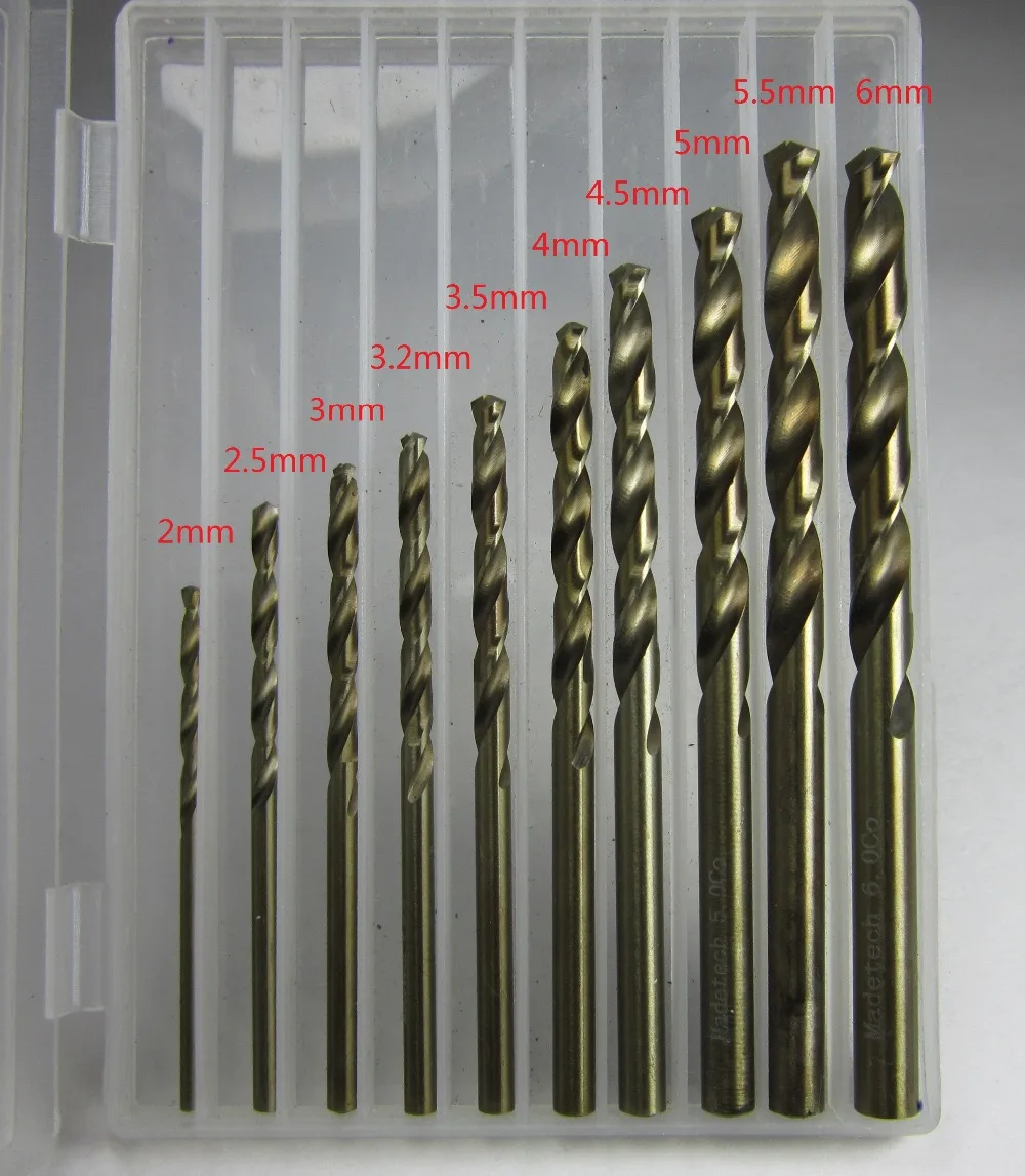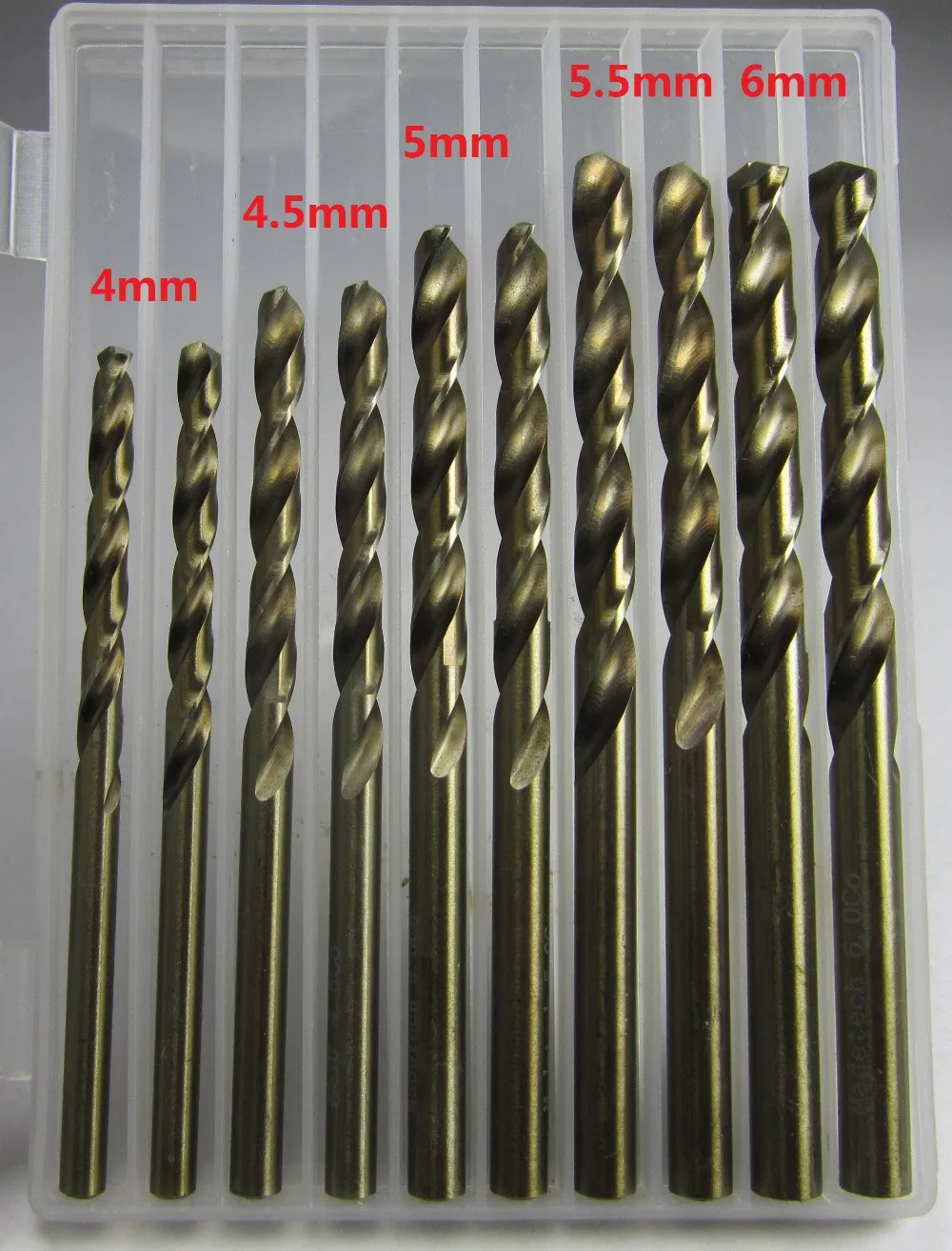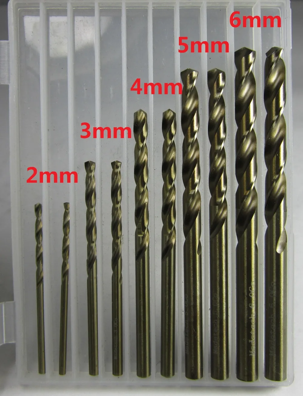 Кобальтовое спиральное сверло HSS-CO М35, 10 шт., высокоточная обработка металлических отверстий, электрическая дрель диаметром 2 мм, 3 мм, 4 мм, 5 мм, 6 мм