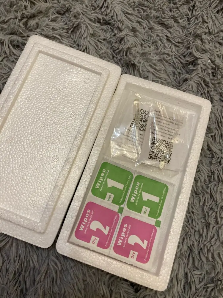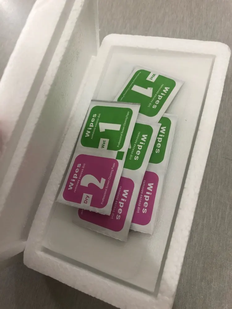 стекло хорошее. салфетки сухие. пишут, что края не приклеиваются, да, но для этого положена маленькая пипетка. этой жидкостью заливается край, лишнее вытирается и все супер. расстроило только то, что салфетка для обезжирки вообще сухая.