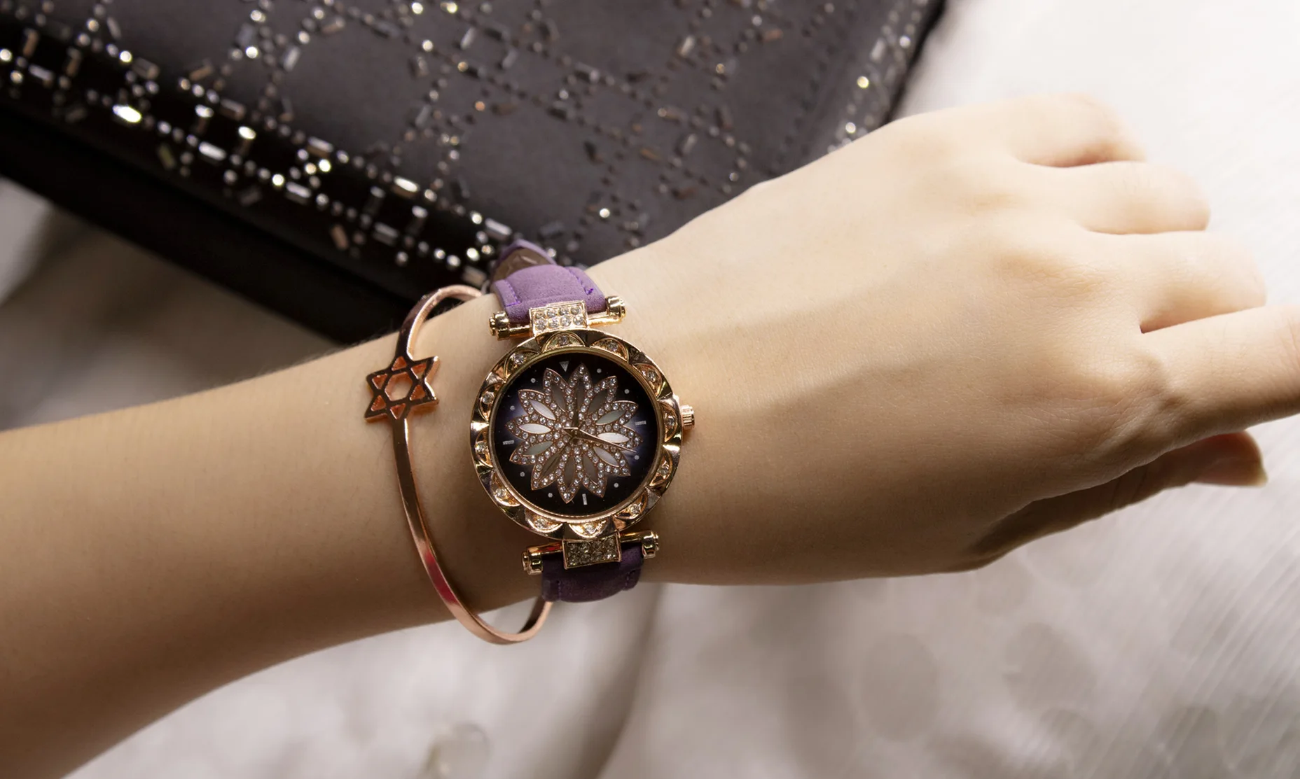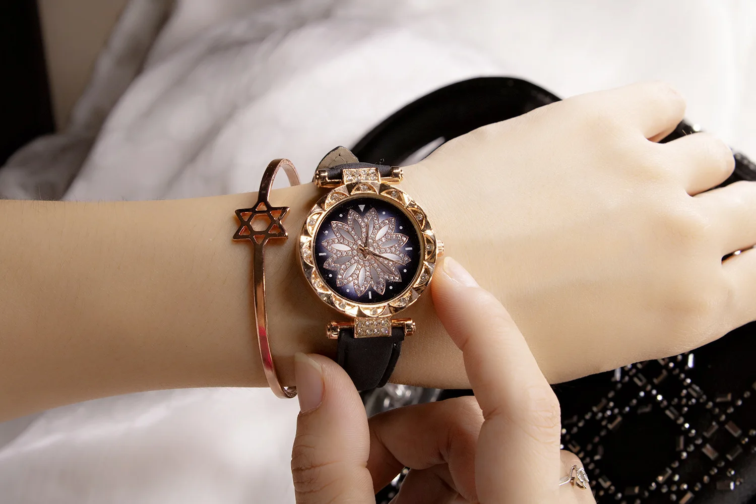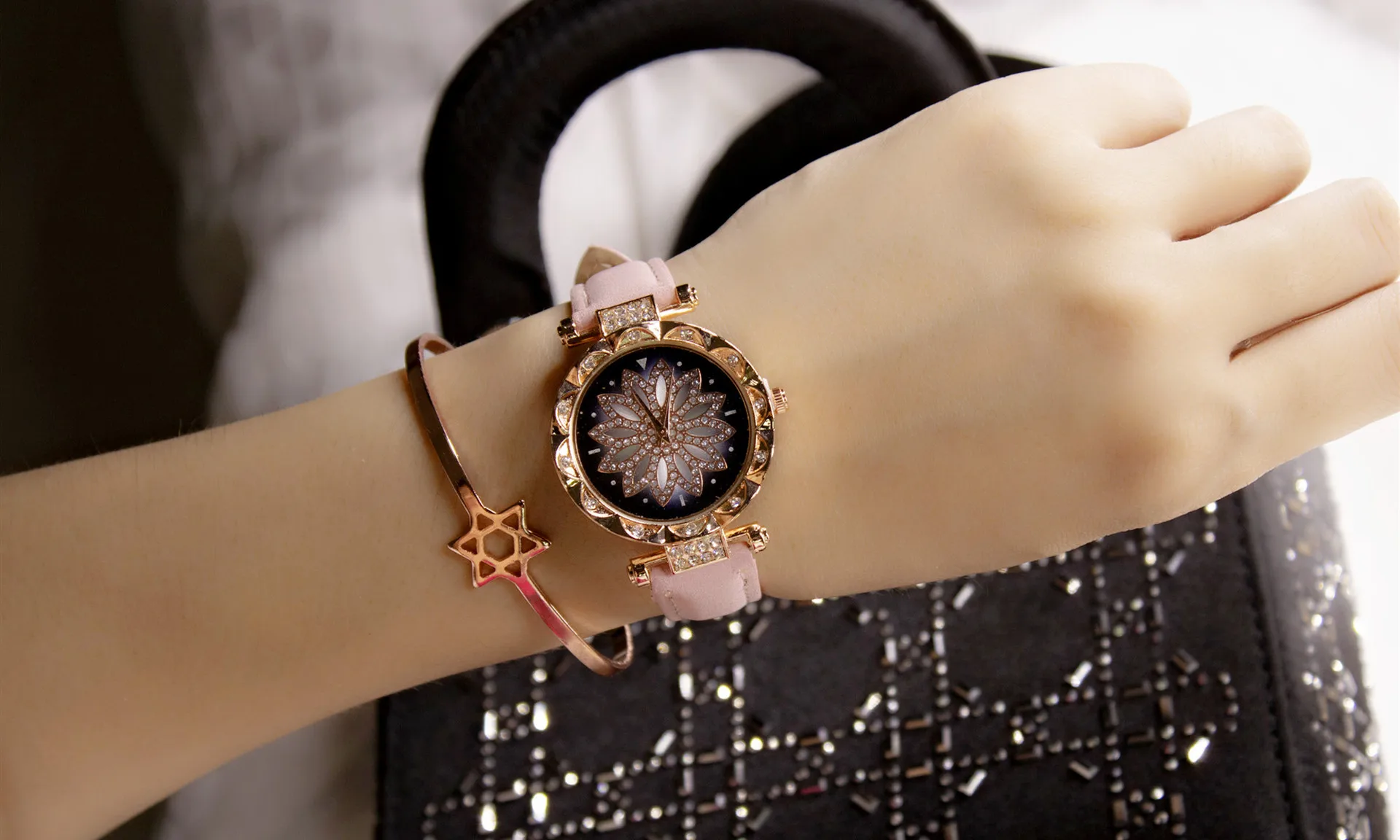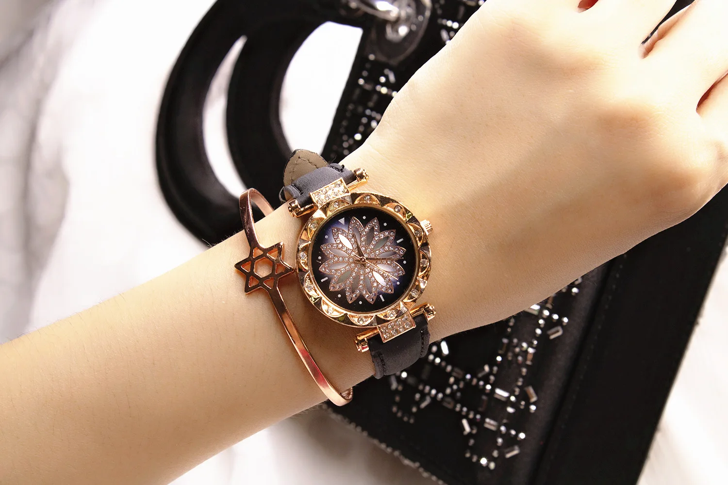 Часы женские кварцевые со звёздным небом, повседневные наручные, с кожаным ремешком