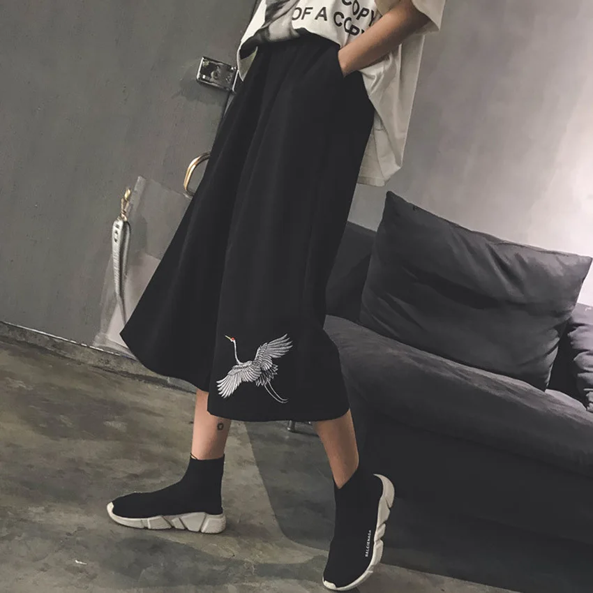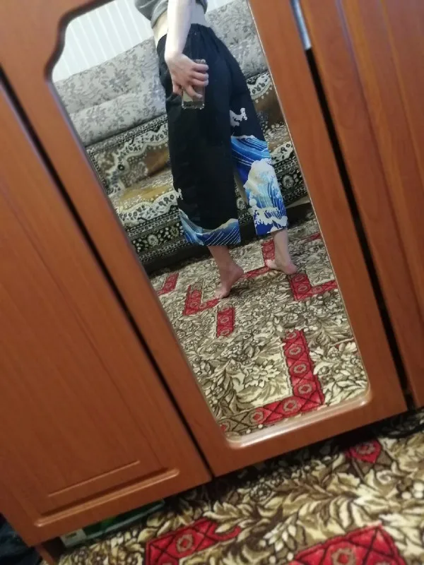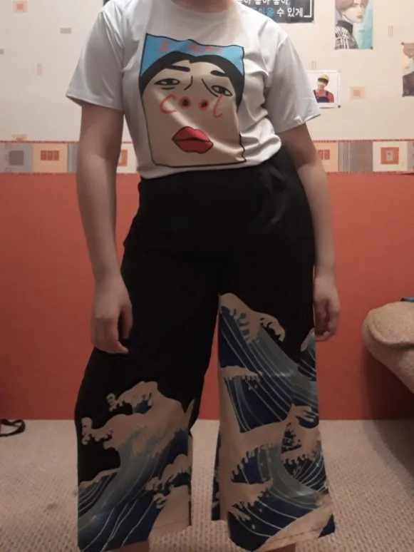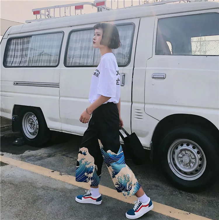 Брюки унисекс с широкими штанинами для мужчин и женщин, повседневные Широкие штаны в японском стиле Харадзюку, свободные шаровары с принтом волн в стиле укиё-э