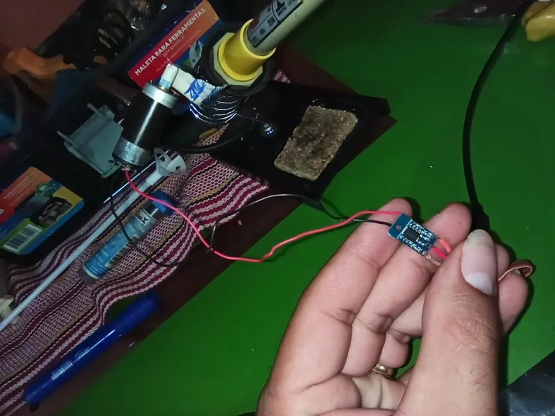 Хороший продукт, плата от рулевой машинки. К сожелению мотор от вертолётика вместе с винтом не потянул