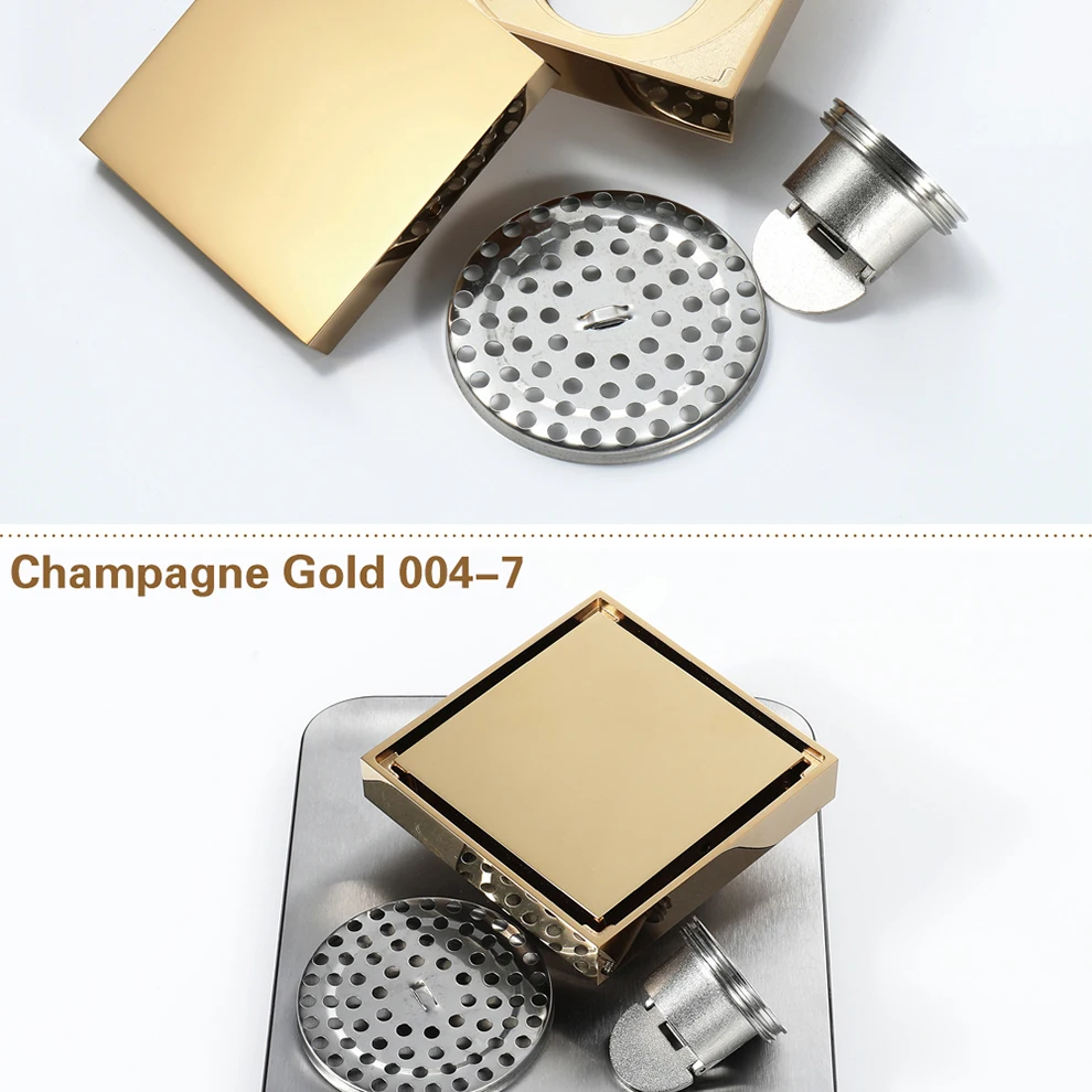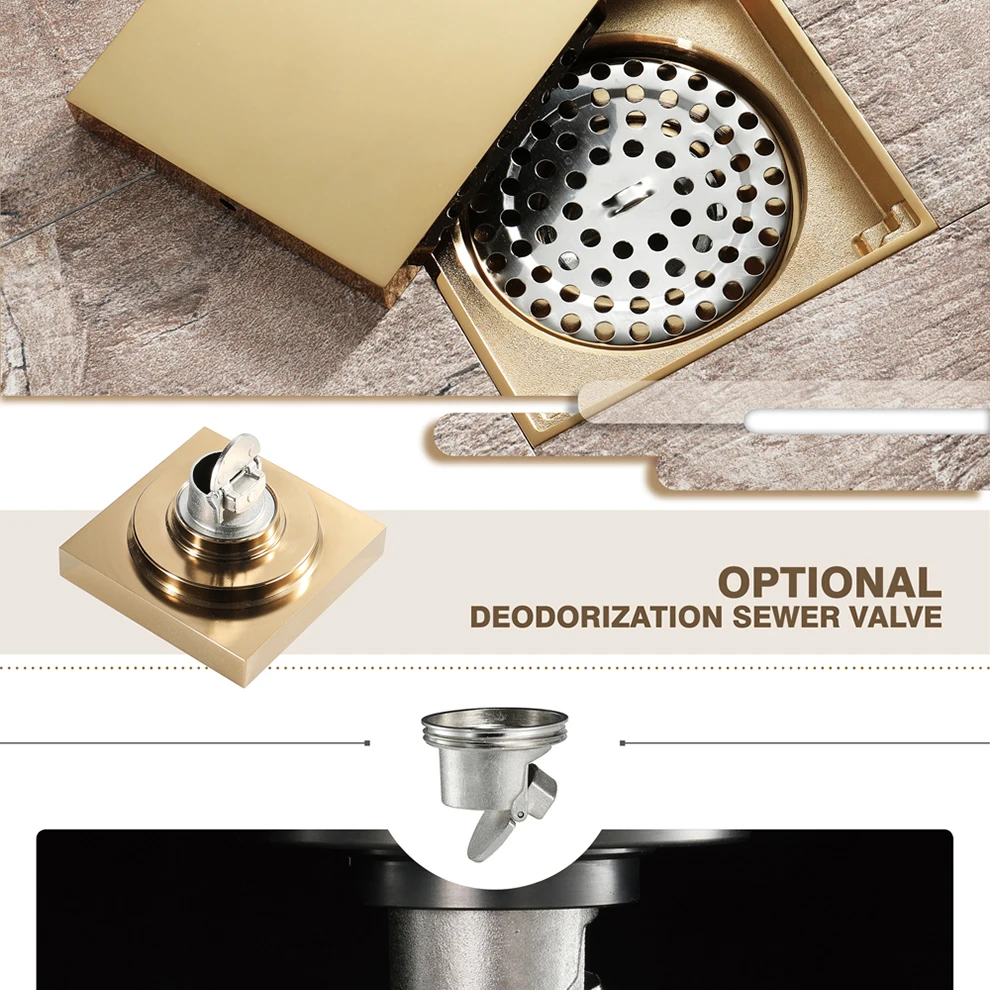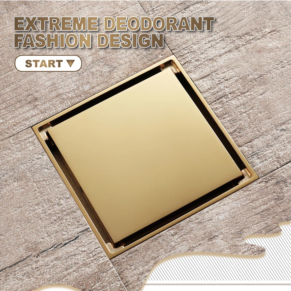 HIDEEP 10x10 см, слив для пола с защитой от запаха, шампанское, золото, латунь, для туалета, ванной комнаты, вставка для плитки, слив для душа, фильтр для волос