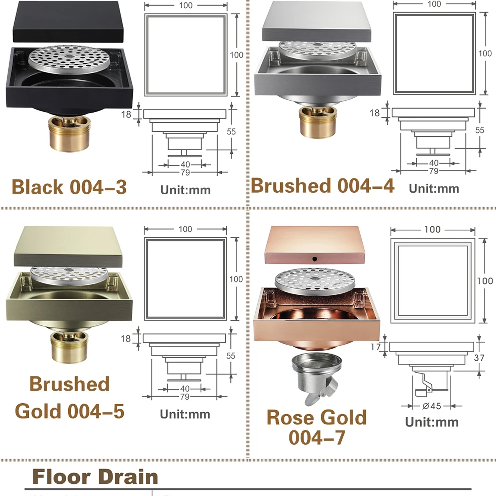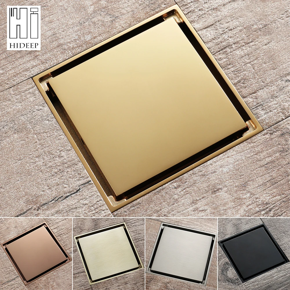 Слив HIDEEP для пола, 10x10 см, латунный, с защитой от запаха, для шампанского, золотого цвета, для туалета, ванной, для кафеля, слив для душа, ситечко для волос