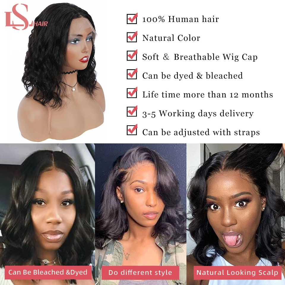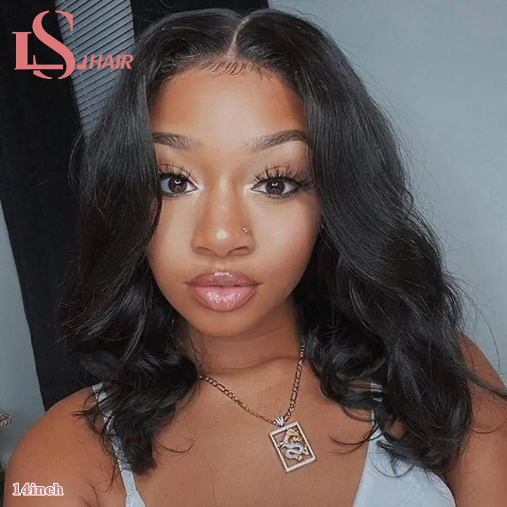 Парик LS бразильский прямой с короткими волосами, фронтальные парики на сетке, 13x4, человеческие волосы на сетке, предварительно выщипанные Детские волосы, волосы без повреждений