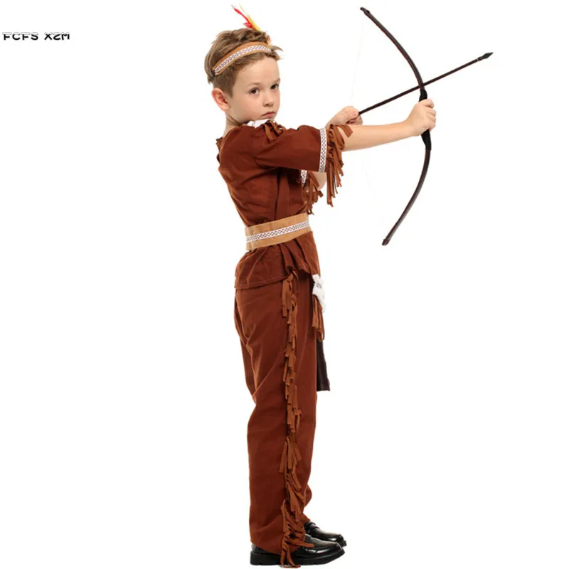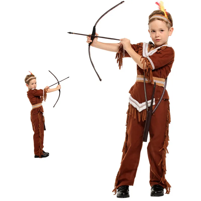 Костюм для мальчиков, Хэллоуин, индийский лучник, для детей, охотник, воин, косплей, Пурим, парад, сценическая игра, платье для маскарада, вечеринки