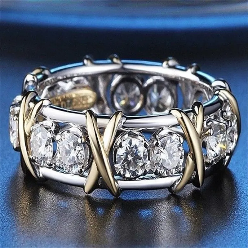 Новые трендовые креативные крестообразные разделенные инкрустированные Женские Двухцветные кольца, свадебные модные ювелирные изделия, помолвка, лучшие подарки