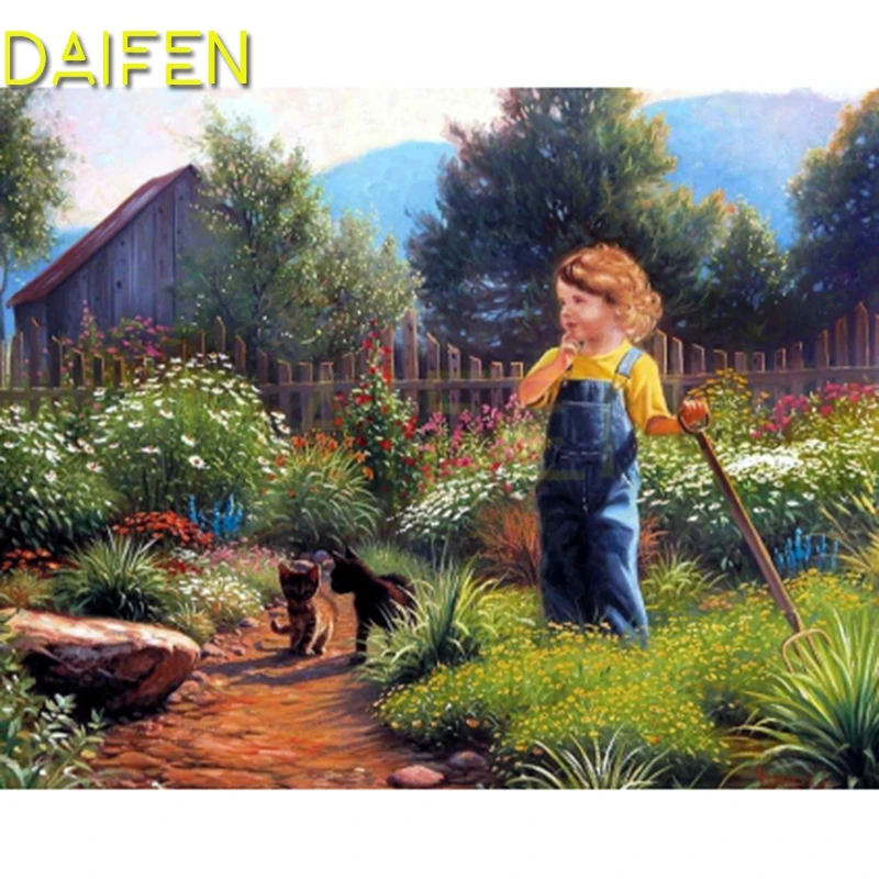 Алмазная живопись с квадратными стразами для мальчиков и собак 5D, алмазная вышивка крестиком, цветочный пейзаж, полная круглая Алмазная мозаика, лопатка, дерево