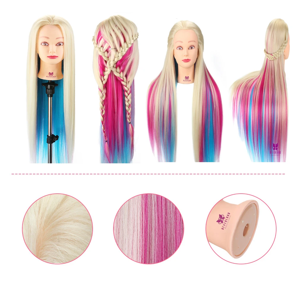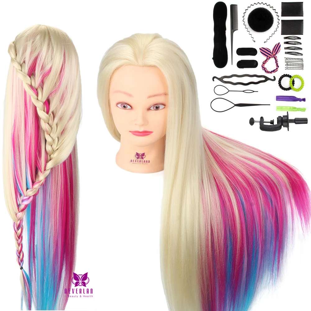 Neverland 26 дюймов цветные синтетические волосы голова манекена для прически Парикмахерская учебная головка с зажимом стола и оплёткой