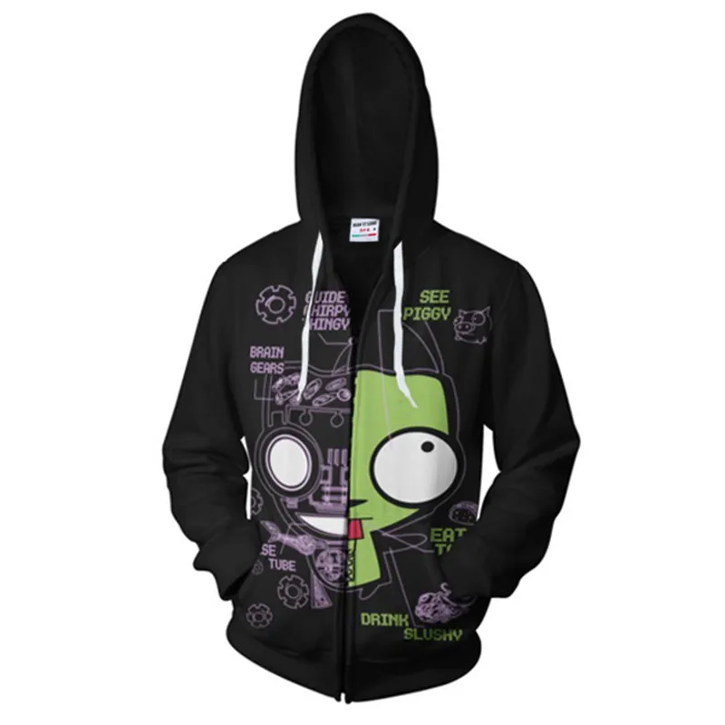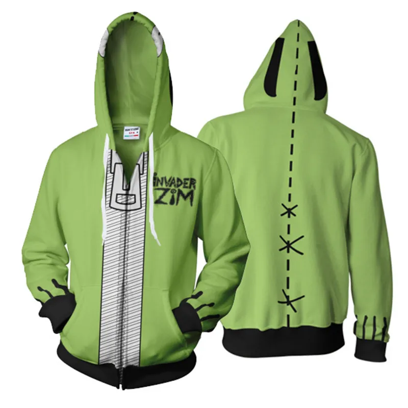 Толстовка Zim с капюшоном и 3D-принтом аниме Invader Zim, костюм для косплея Zim, куртка, пальто для мужчин и женщин