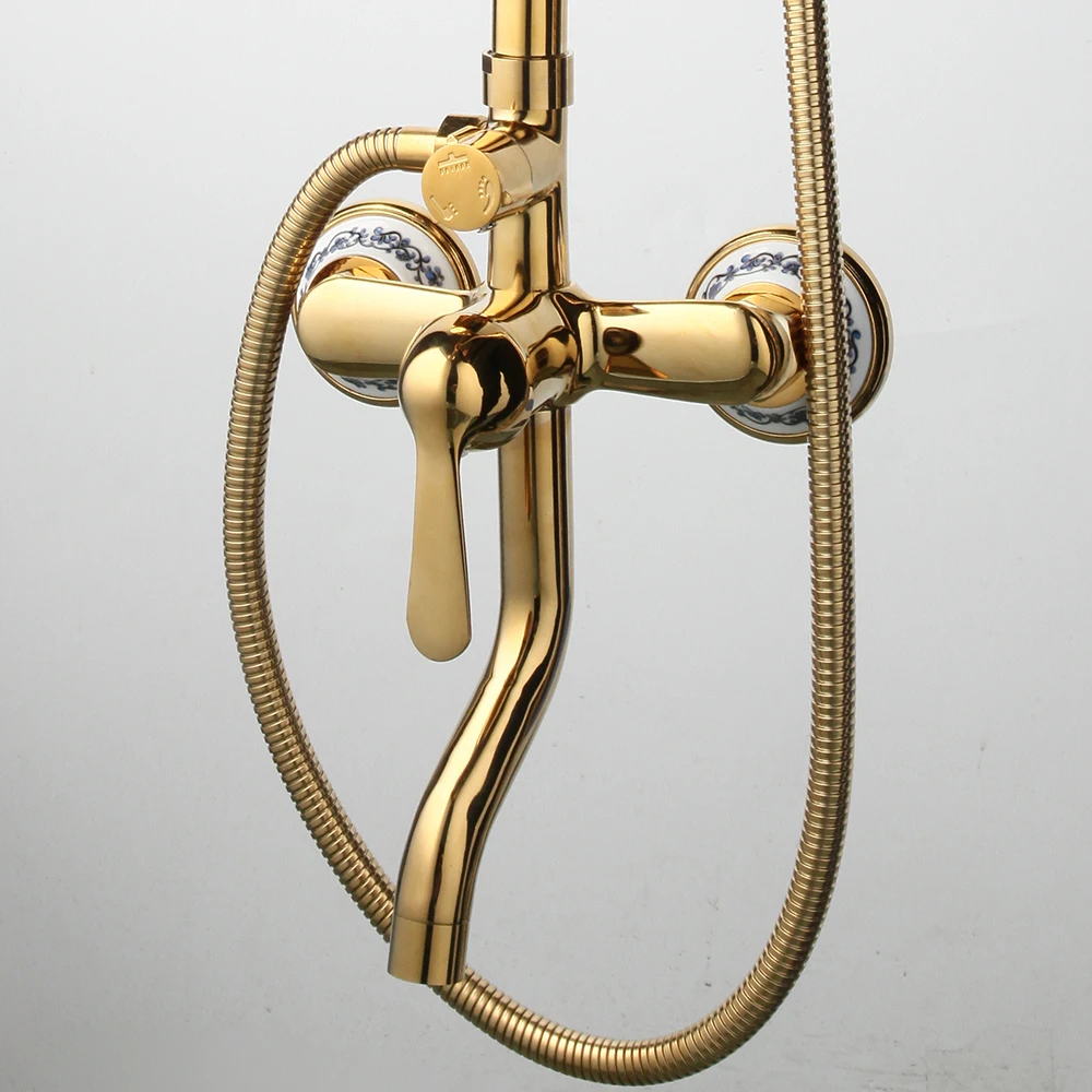 KEMAIDI ванная комната Твердый латунный клапан керамическая ручка душевой набор золотой полированный душевой кран душевая головка сопло аэратора душ