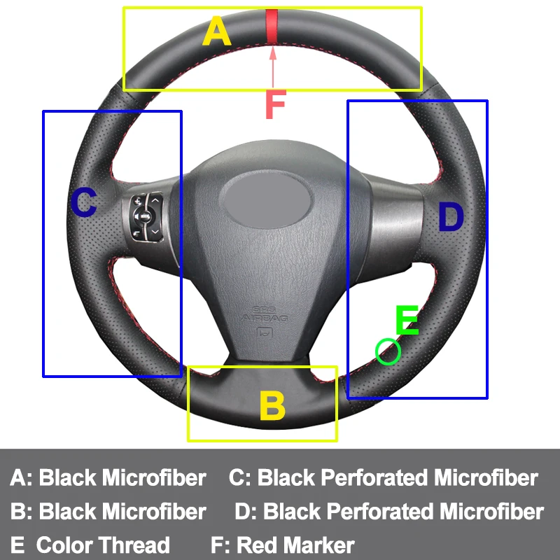 Чехол рулевого колеса автомобиля для ручного шитья, красный маркер ...