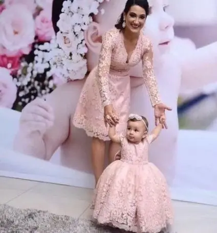 Нарядные платья для мамы и дочки, кружевное платье с цветочной аппл...