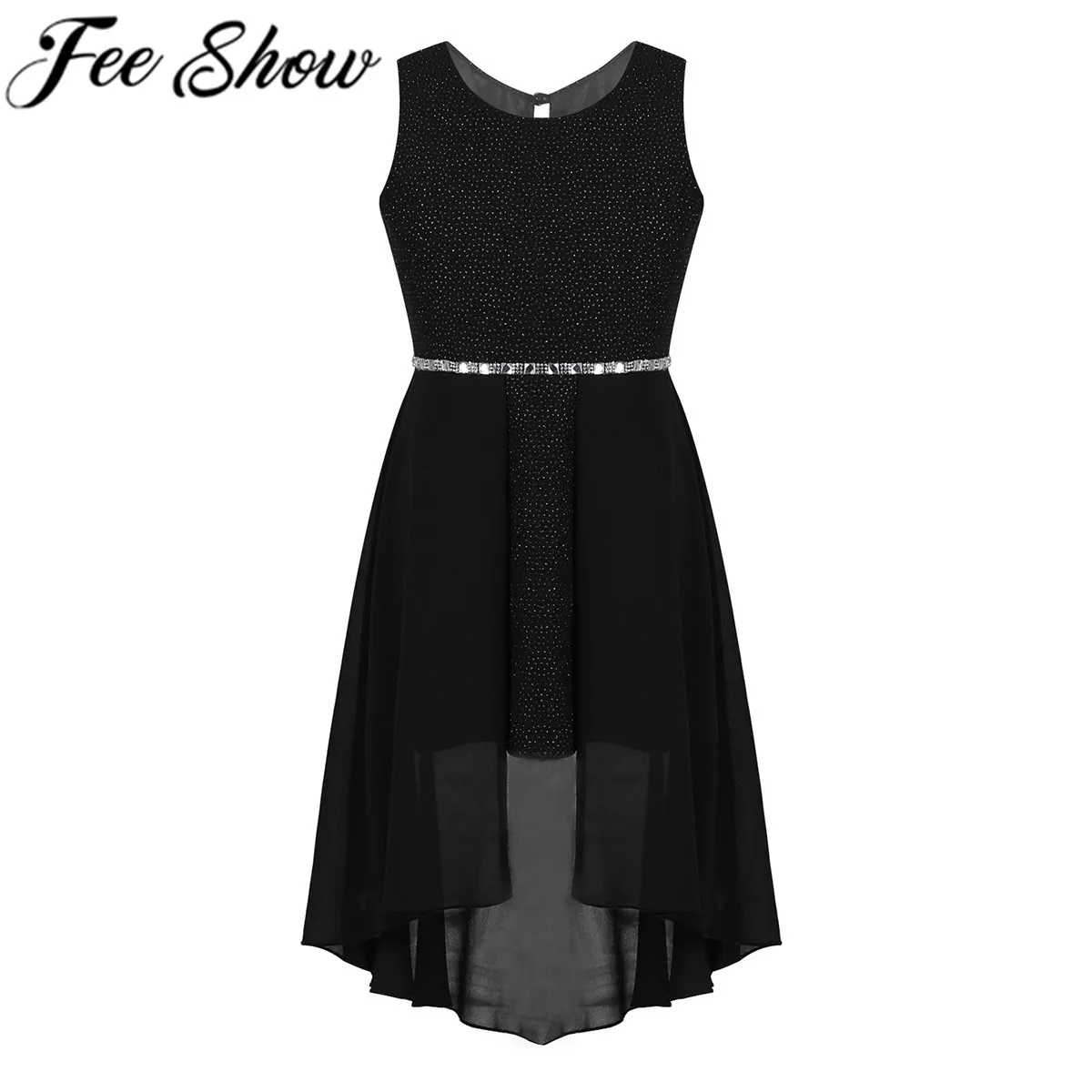 Номер моделиKids Girls Sleeveless Sparkly Rhinestone Waist High-low Hem Dress