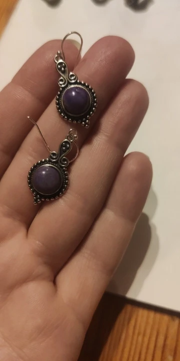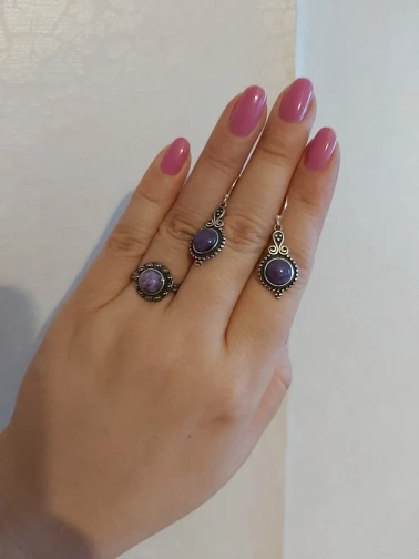 Серьги понравились, но не увидела пробы... Наверно поменяю швензы3, т. К они очень хлипкие и сильно гнутся... Камушек на серьгах красивый темно фиолетовый, а вот с кольцом не повезло☹️... Очень светло фиолетовый совсем не похож на чароит, похож на аметист... Открыла спор, но не решили в моюо пользу☹️брала для комплекта, но очень огорчилась, что совсем разного цвета, вот продавец же видит, что кладёт в комплект разные камни... Короче очень теперь задумаюсь стоит ли тут брать