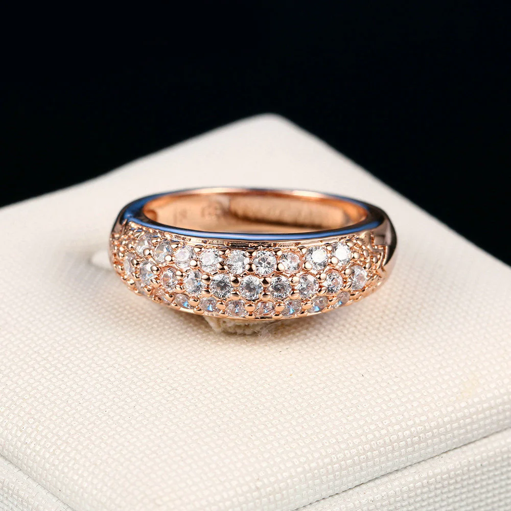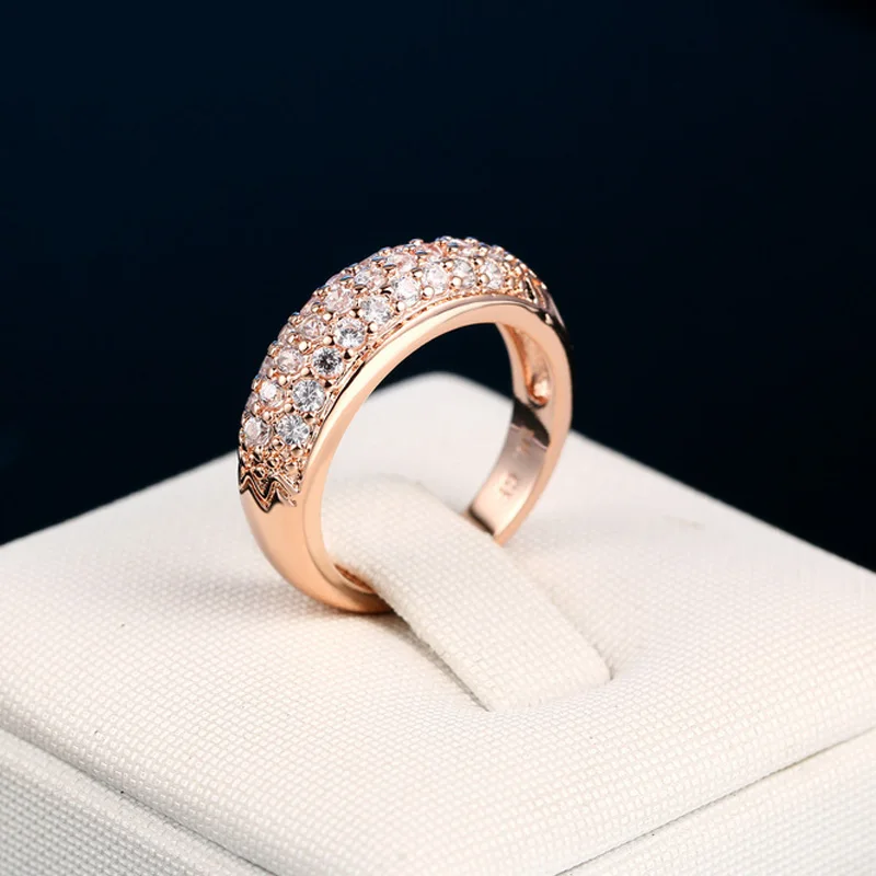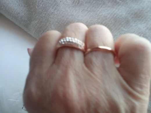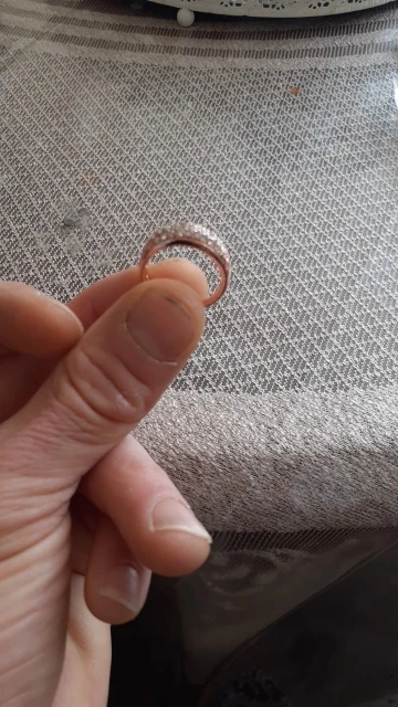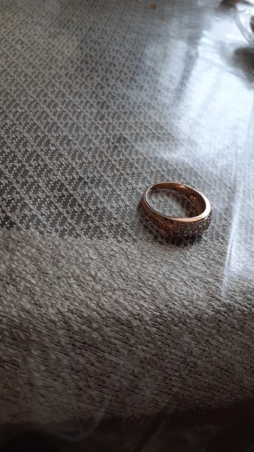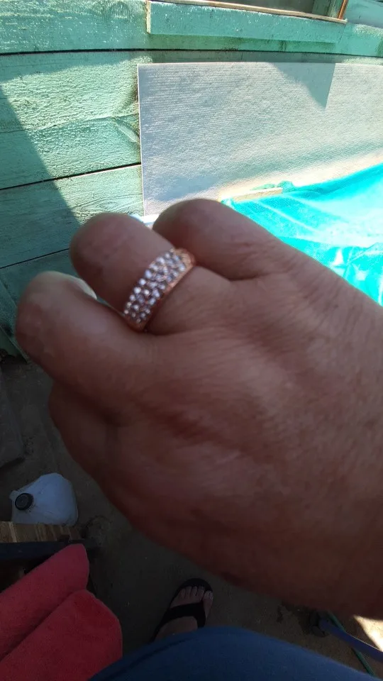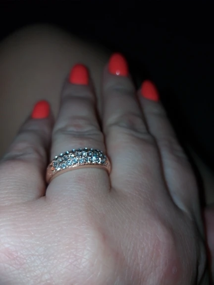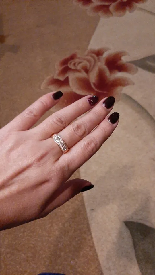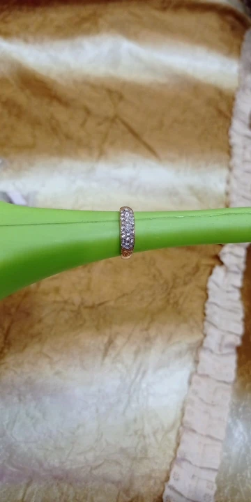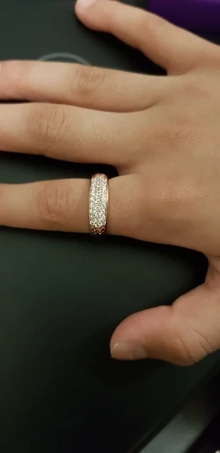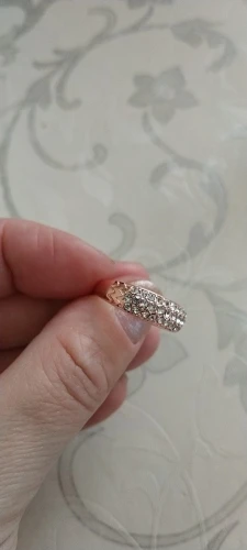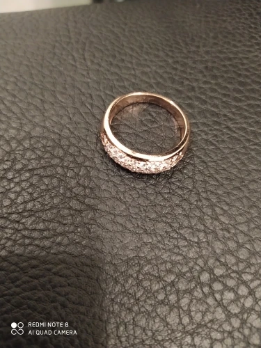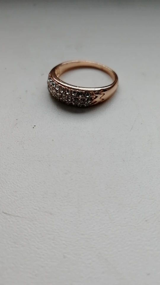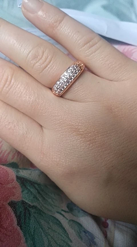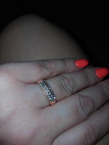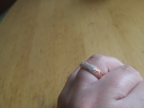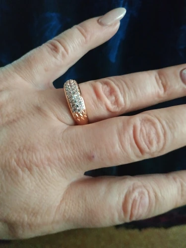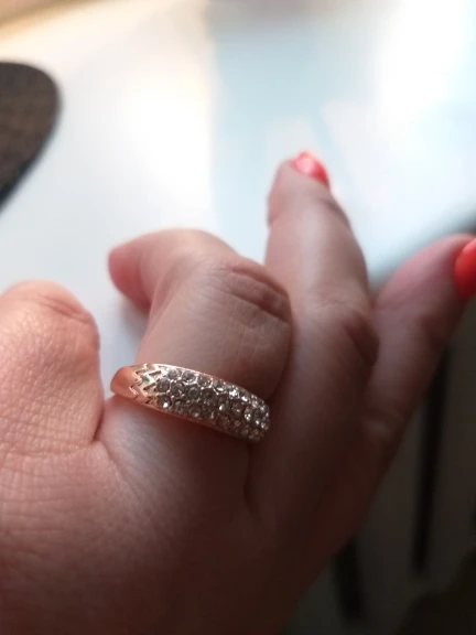 Кольцо из розового 'золота' с тремя рядами цирконов по лицевой стороне. Ранее брала аналогичное у другого продавца и долго пользовалась без ущерба для качества изделия. Посмотрим, как поведет себя это колечко, но брала его не себе.