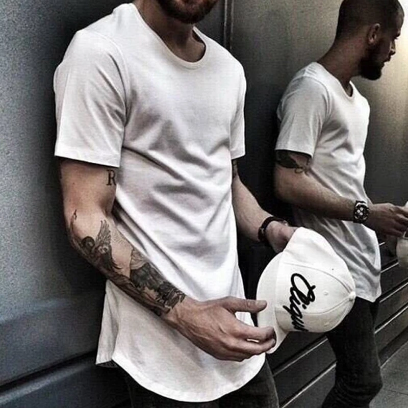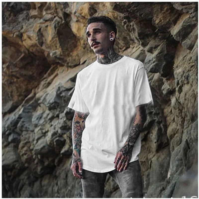 Футболка для мужчин удлиненная круглая футболка с изогнутым подолом длинная линия футболки хип-хоп городская белая уличная одежда Q6349