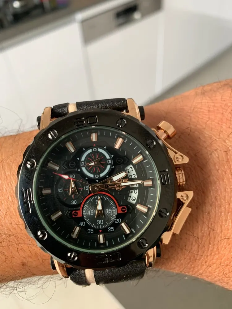 Товар хорошего качества, ремешок немного тугой, но все равно мне нравятся часы. Ремешок хорошего качества, циферблат выглядит красиво, Презентация на всех часах потрясающая, спасибо продавцу, спасибо AliExpress