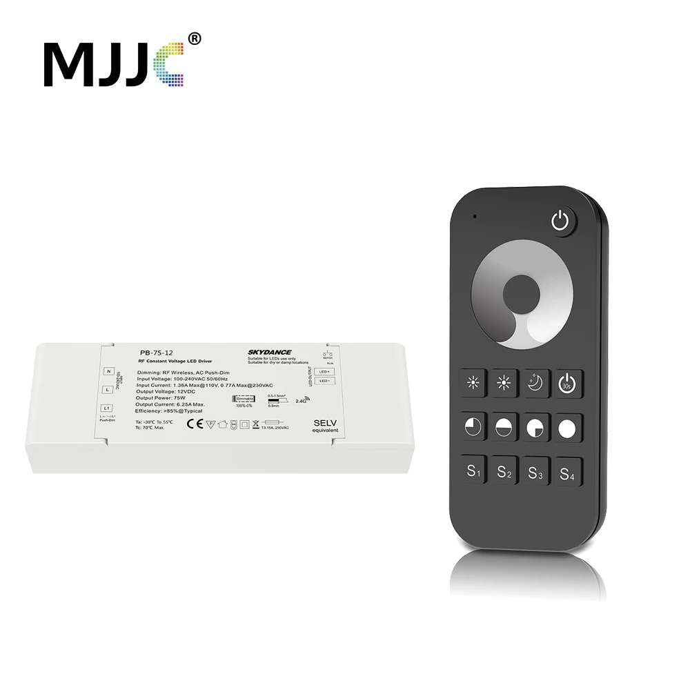 Светодиодный драйвер с регулируемой яркостью 12 В 24 в 75 Вт Светодиодный драйвер с регулируемой яркостью для скайдэнса с пуш-диммером 12 вольт постоянное напряжение 2,4G RF драйвер дистанционного управления