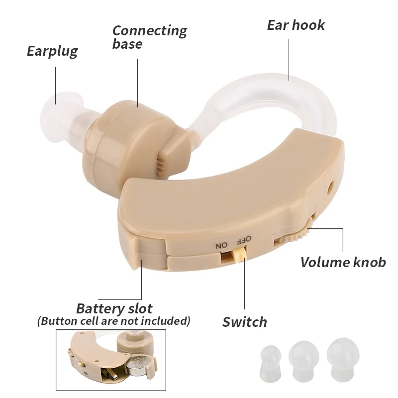 Слуховой аппарат Максимальный выход звука: 130 ± 5 дБ Максимальное усиление звука: 55 ± 5 дБ Гармоническое искажение волны: ≤ 10%(1000 Гц) Диапазон частот: 300-4500 Гц Входной шум: ≤ 30 дБ Батарея: батарейки AG13 (в комплекте 1 шт., из-за того, что почта не позволяет отправить слишком много батарей, мы отправим 1 аккумулятор для справки.) Рабочее напряжение: 1,5 В постоянного тока Рабочий ток: ≤ 3 мА Цвет: как показано на рисунке Размер изделия: 3,8x2,1x0,9x3 см Посылка: 19x8,2x2 см Вес нетто: 9 г Посылка входит 1 x JZ-1088A слуховой аппарат 3 Беруши (разные размеры) 1 х Руководство пользователя 1 коробка (опционально) Примечание 1. Отрегулируйте громкость до минимума перед ношением. 2. Выберите беруши чуть большего размера, чтобы избежать свистка. 3. Постепенно увеличивайте громкость, чтобы избежать резкого усиления звука. 4. Если вы слышите вой, проверьте, подходит ли ухо (силикагель) и туго ли подходит размер штекера, подберите беруши и подключите, убедитесь, что нет утечки воздуха. 5. Держите беруши чистыми 6. Извлеките аккумулятор, если вы не используете его в течение длительного времени.