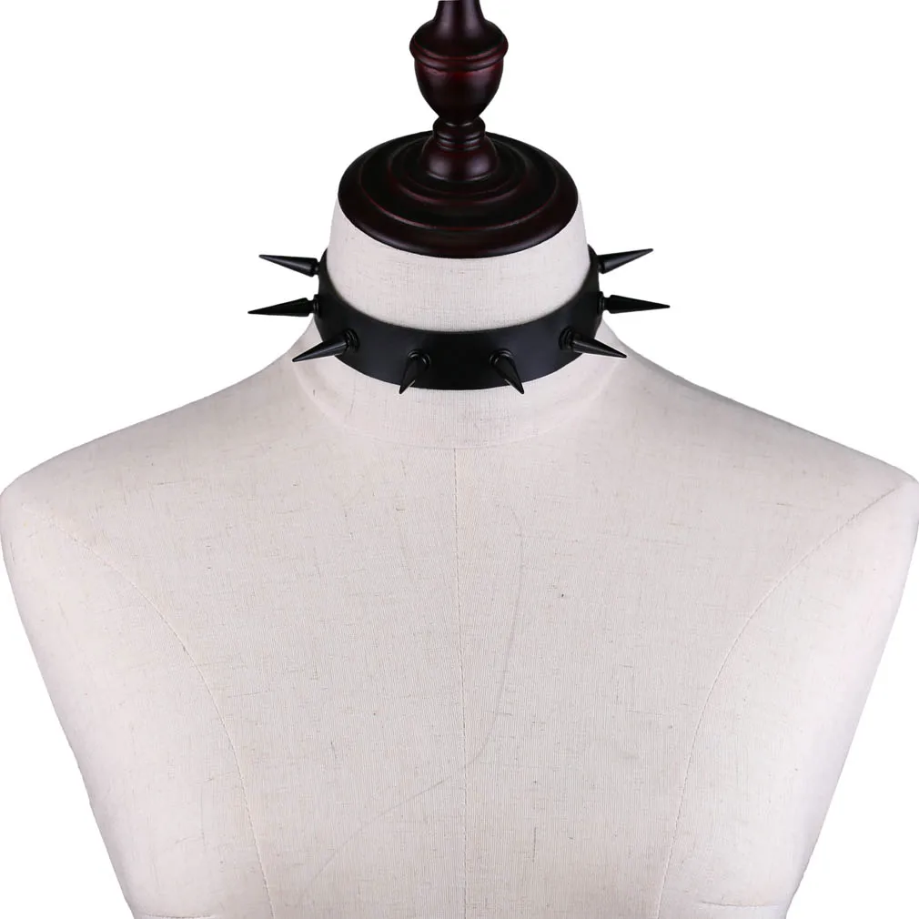 Ошейник-чокер из Веганской кожи с черными шипами, ювелирные изделия с изображением ведьмы, ожерелье для косплея, готические аксессуары чокер в готическом стиле