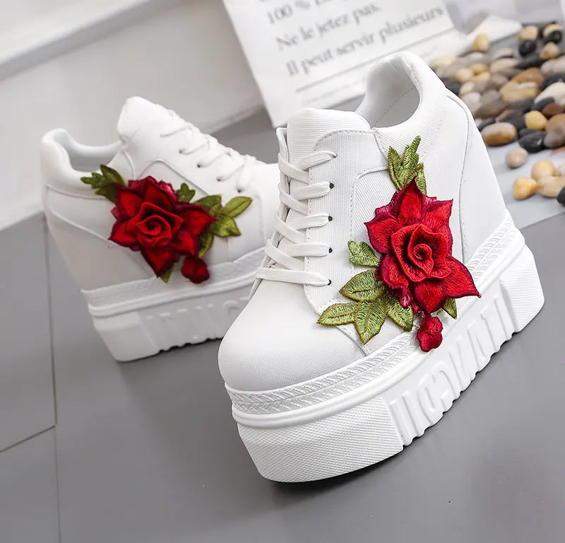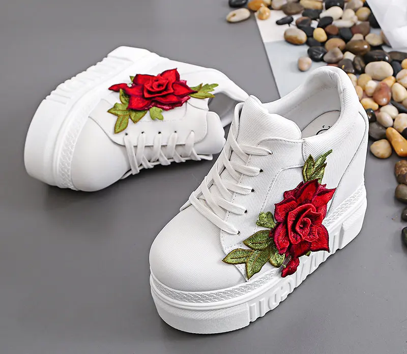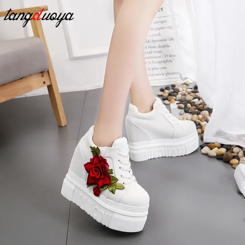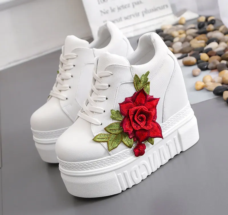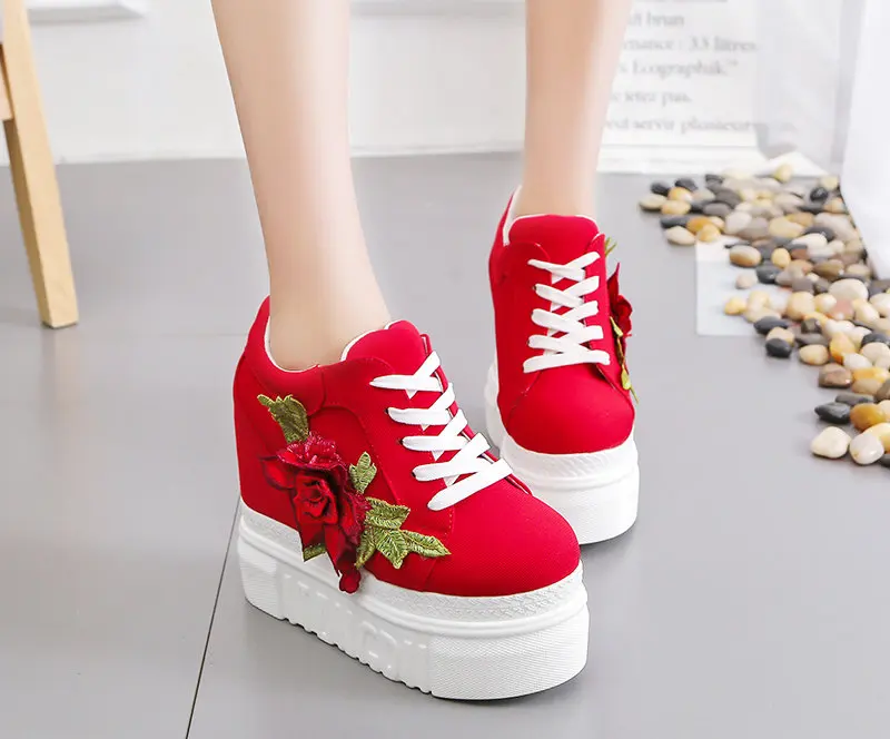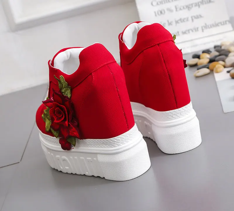 Кроссовки на платформе; Женская Вулканизированная обувь; Винтажная женская обувь на высокой танкетке со шнуровкой; Женская обувь для отдыха; Женская обувь; Цвет белый, красный