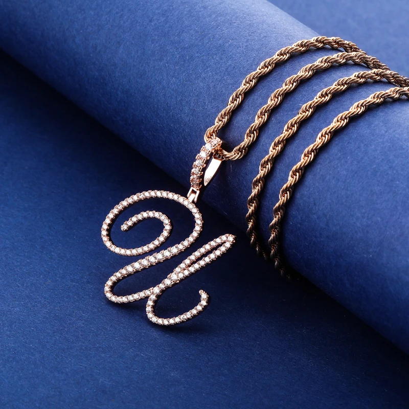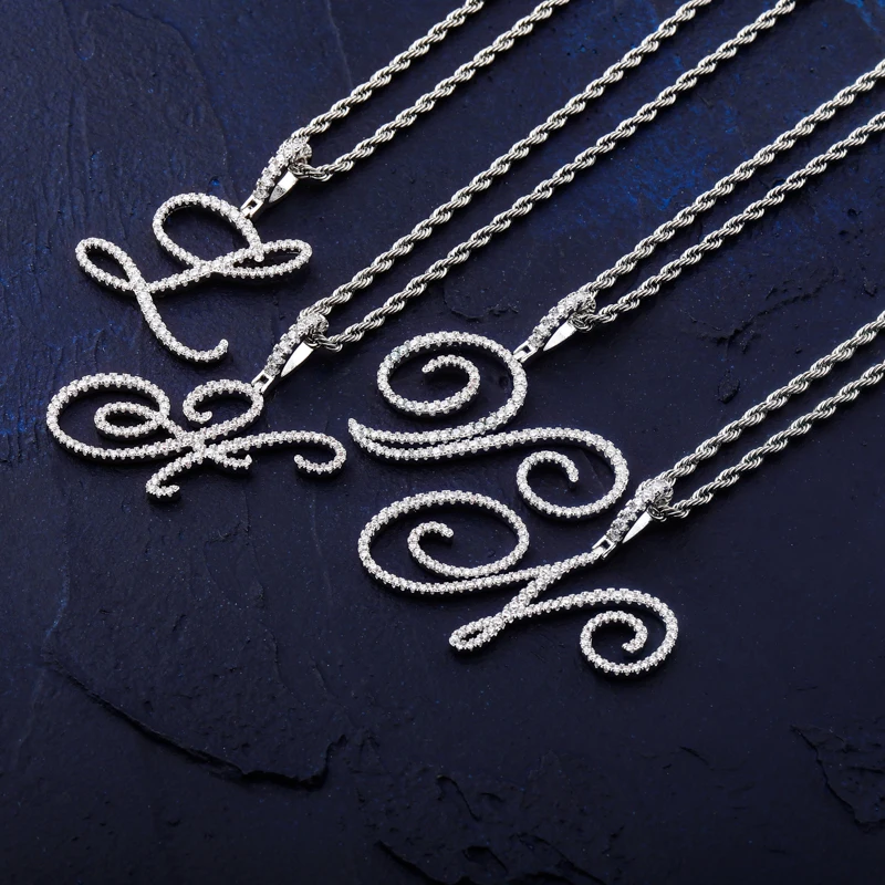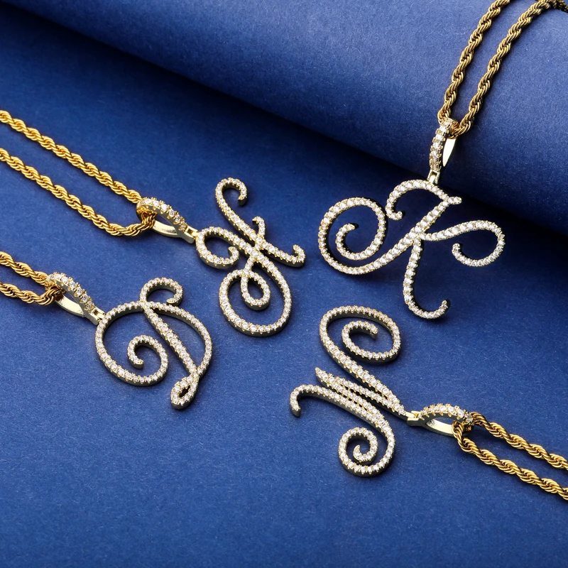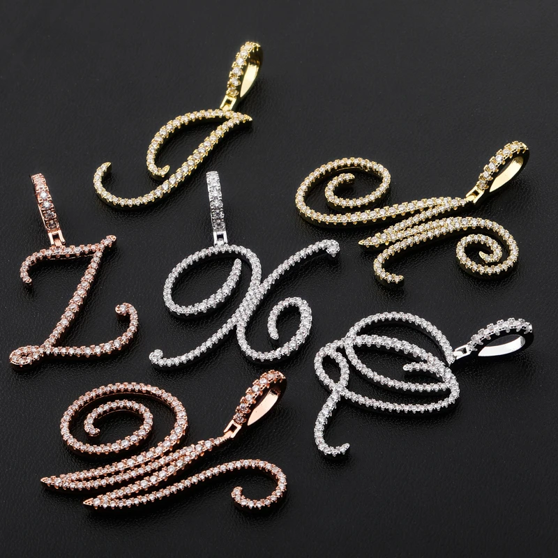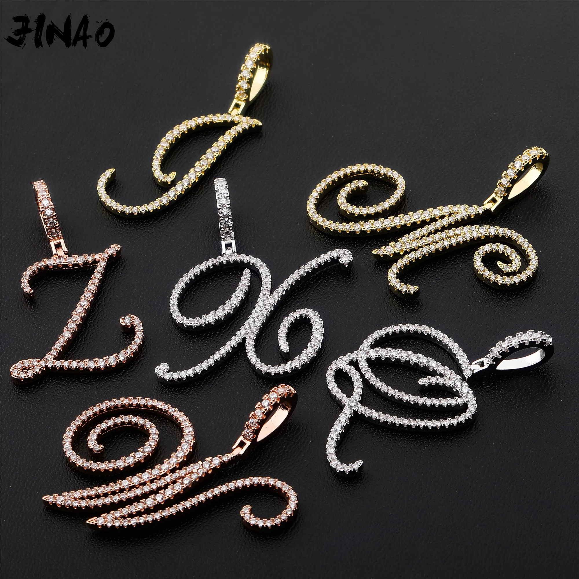 JINAO Новая мода курсивные буквы A-Z кулон и ожерелье хип-хоп кубический циркон очаровательные ювелирные изделия для мужчин женщин Подарки
