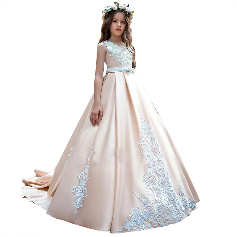 Новые Платья с цветочным узором для девочек платья с длинным рукавом для первого причастия Бальные платья с круглым вырезом и бантом на заказ Vestidos