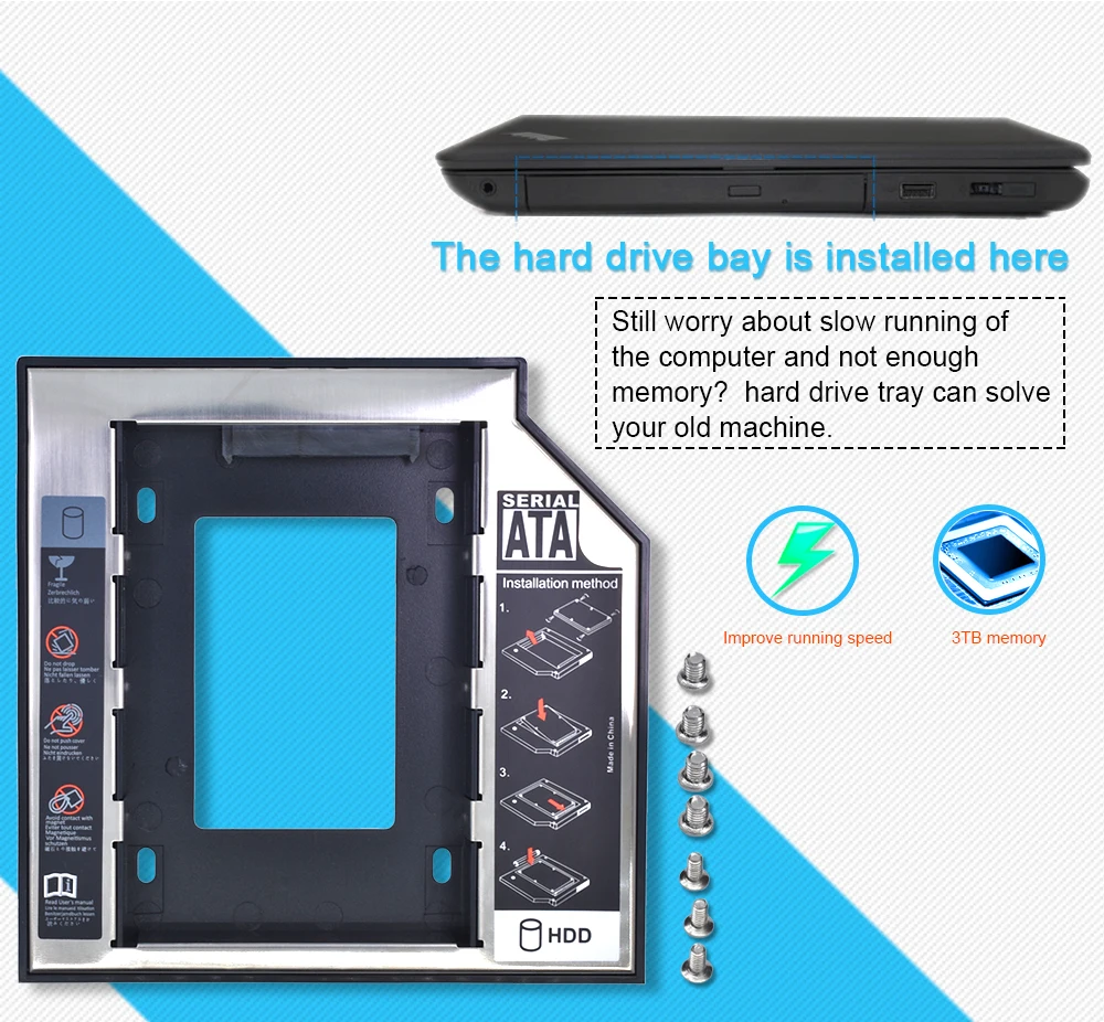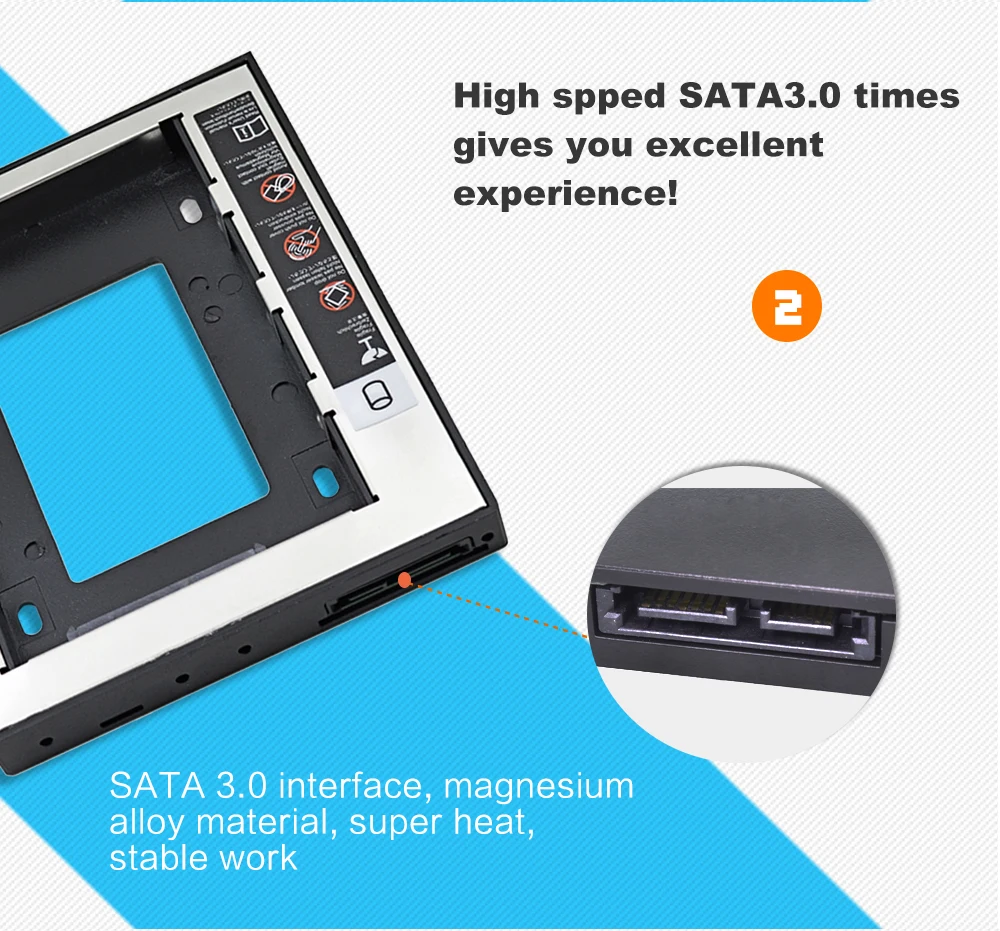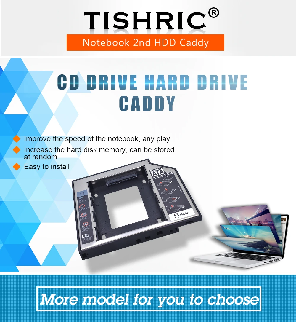 Корпус TISHRIC Optibay для второго жесткого диска SATA 12,7, 9,5 мм3,0 мм, корпус для SSD-2 ТБ 2,5 дюйма для ноутбука, адаптер для CD-ROM, DVD-HDD