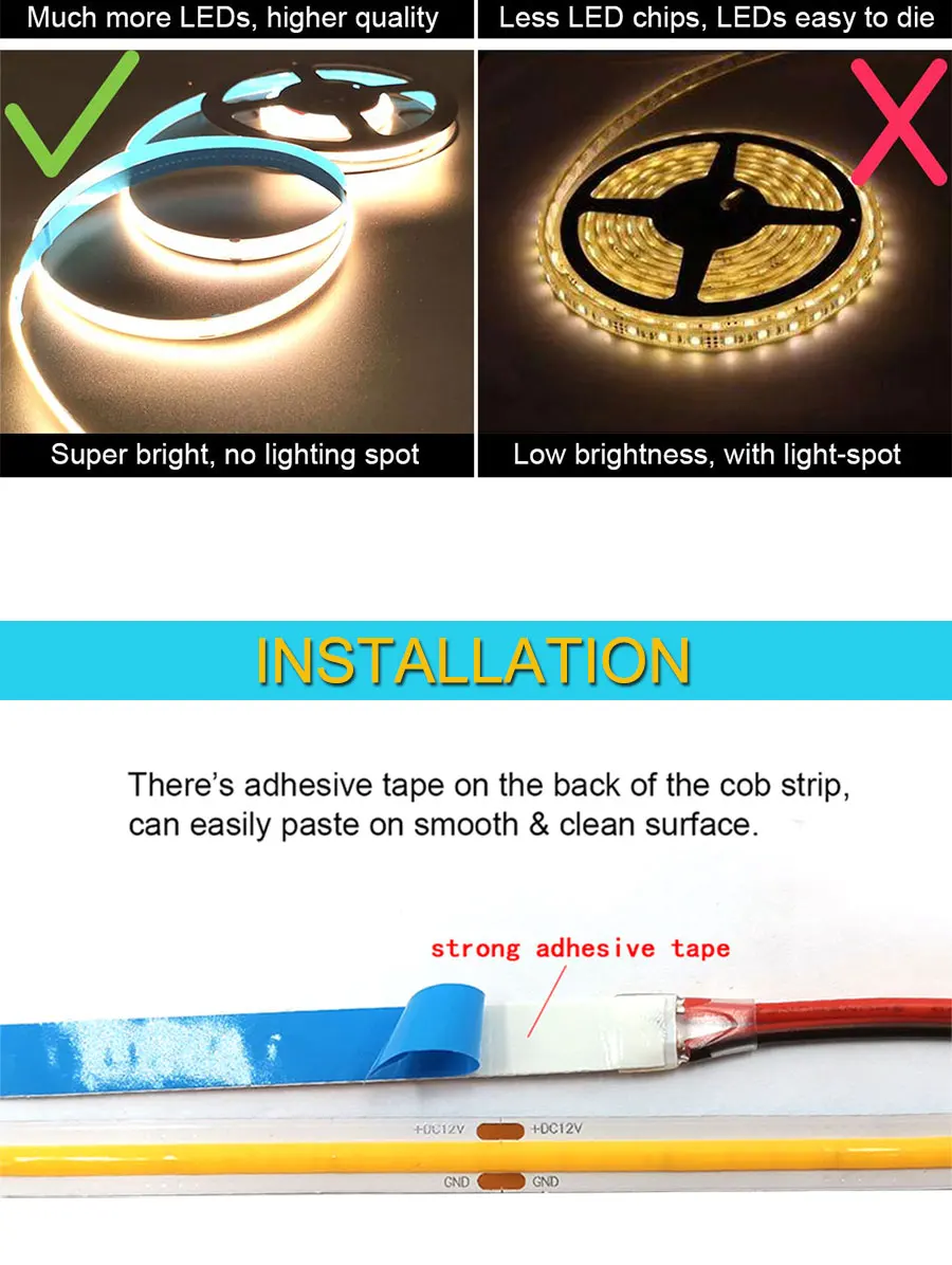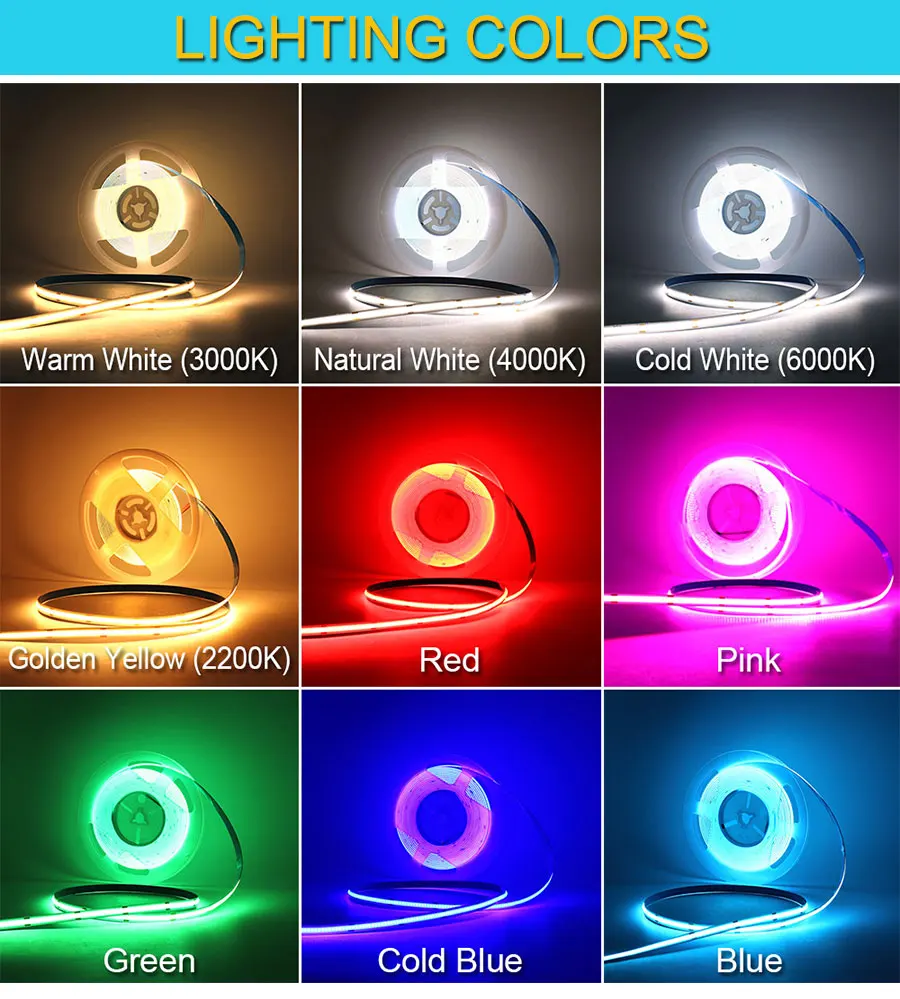 Светодиодный чип: SANANДлина: 1 м, 2 м, 3 м, 4 м, 5 мШирина COB: 8 ммРабочее напряжение: 12 В постоянного тока или 24 В постоянного токаМощность: 10-12 Вт/метрКоличество светодиодов: 384 шт./мРа: >90Световой поток: 100 лм/ВтСветильник: синий, желтый, теплый/холодный белый, красный, розовый, холодный синий, золотой, желтыйРежущая единица: 41,5 мм/вырезПрименение: украшение дома, внутреннее освещение, автомобильное освещение, другое DIY освещение...