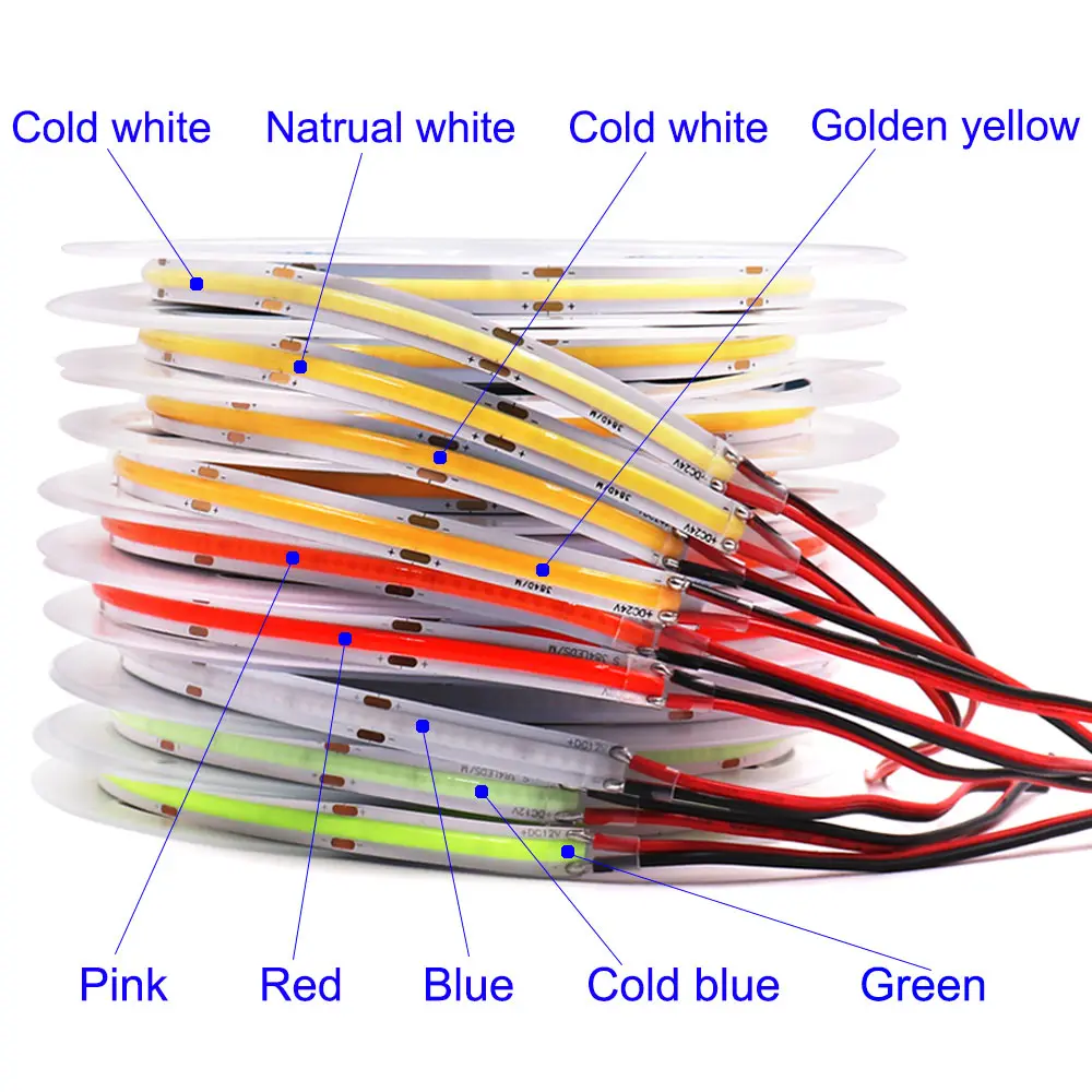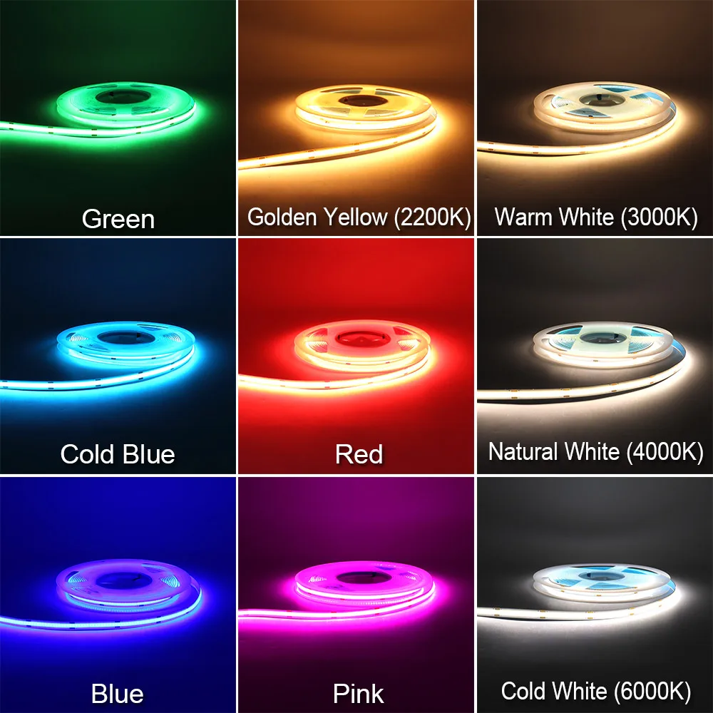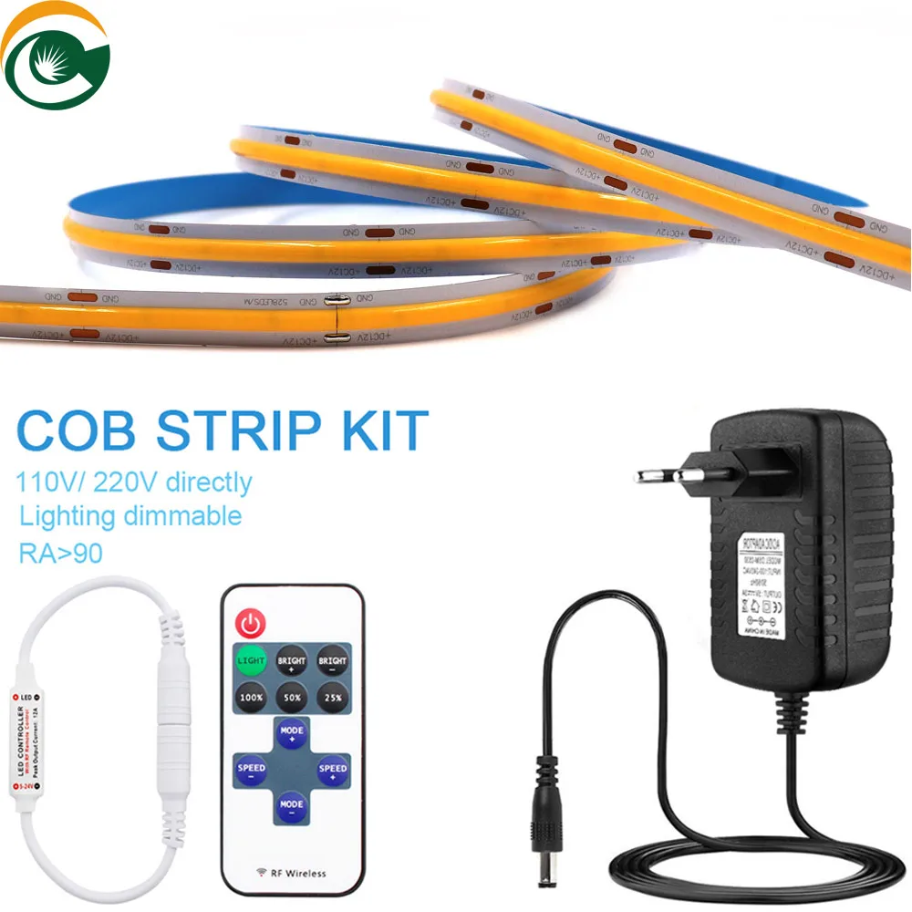 Гибкая светодиодная лента KLA-FCOB CRI 90 DC 12V 24V COB с диммером, 1 м, 2 м, 3 м, 4 м, 5 м, теплый, холодный, белый, синий, красный, зеленый, розовый