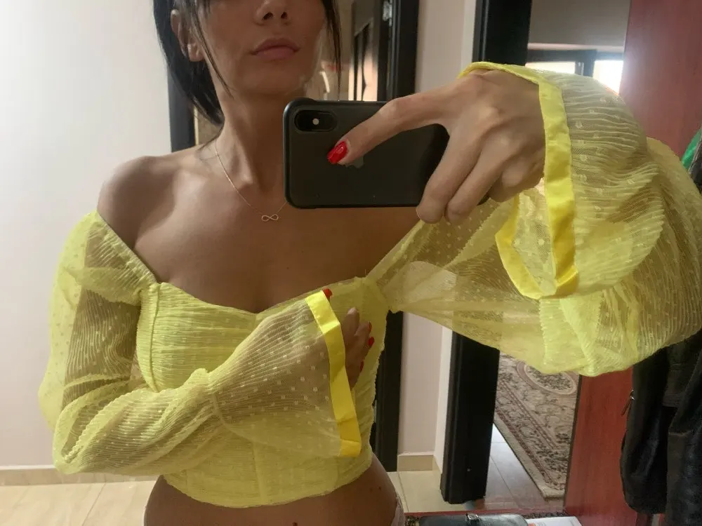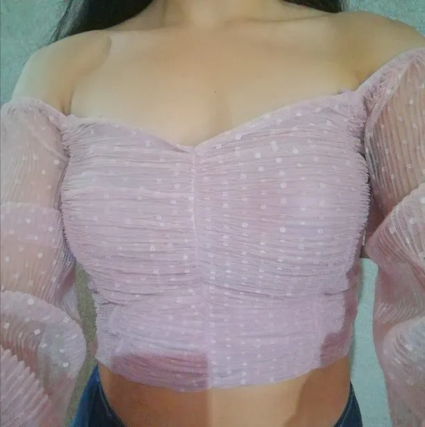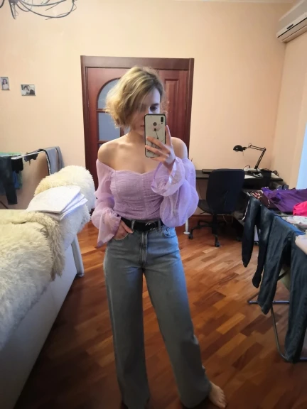 Рост 170 грудь 80, взяла размер М, все хорошо, рукава не короткие. Ткань полупрозрачная, поэтому бюстгальтер без лямок нужен и в цвет блузки. Коротковата, но если подспустить и джинсы на высокой талии, то все хорошо. Пришло быстро)