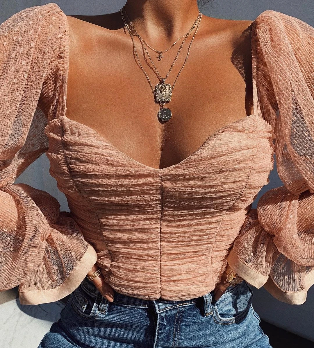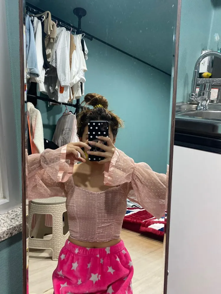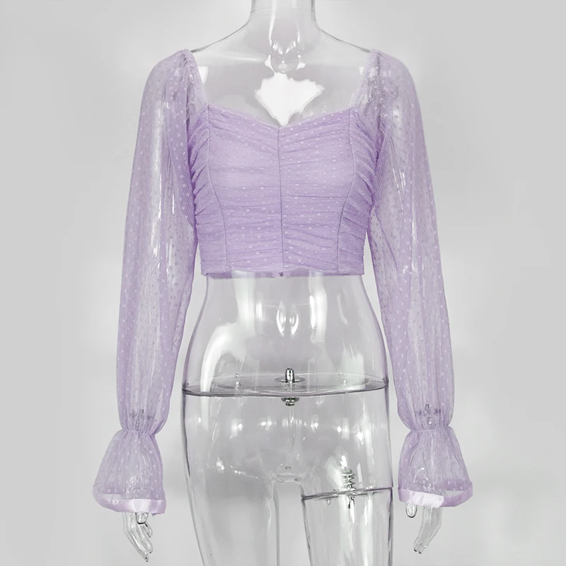 Женская блузка в горошек NewAsia Garden, розовая блузка с пышными рукавами и оборками, винтажные Однотонные блузки с квадратным вырезом, 2020