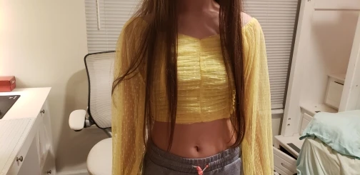Очень красивый топ. Прям как на фото. Он тянется. Длина где-то до середины живота. Сзади на молнии