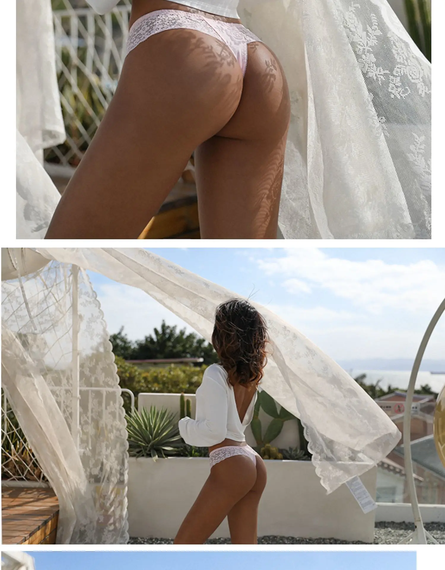 Однотонные прозрачные кружевные женские стринги, нижнее белье, хлопковые модные сексуальные трусики, женские трусы