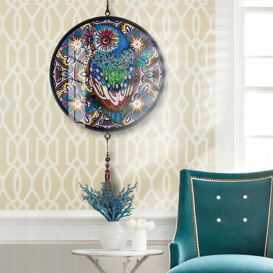 Новый дизайн росписи кисточки алмазная живопись с круглой рамкой узор павлина Совы Алмазная вышивка крестиком домашний декор стен