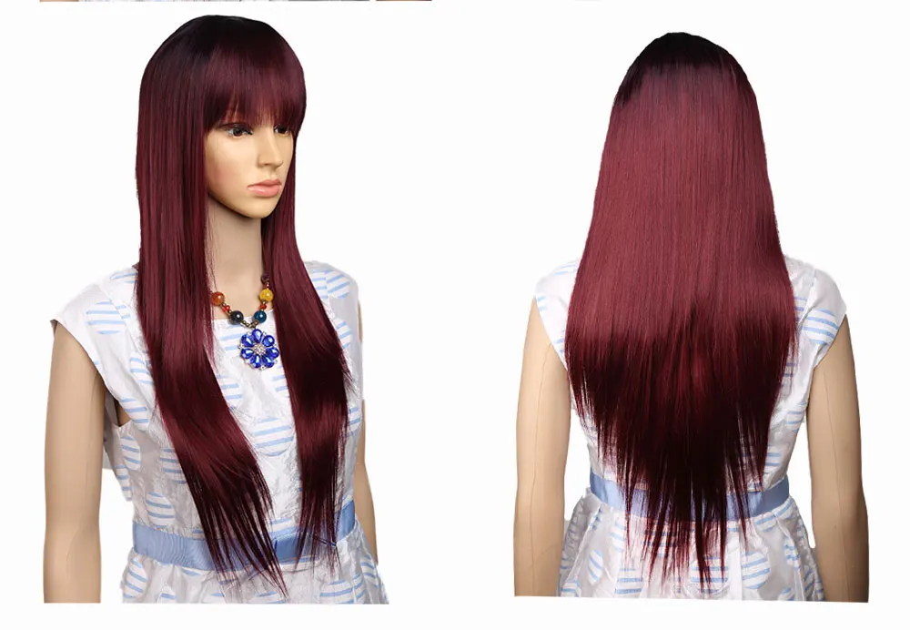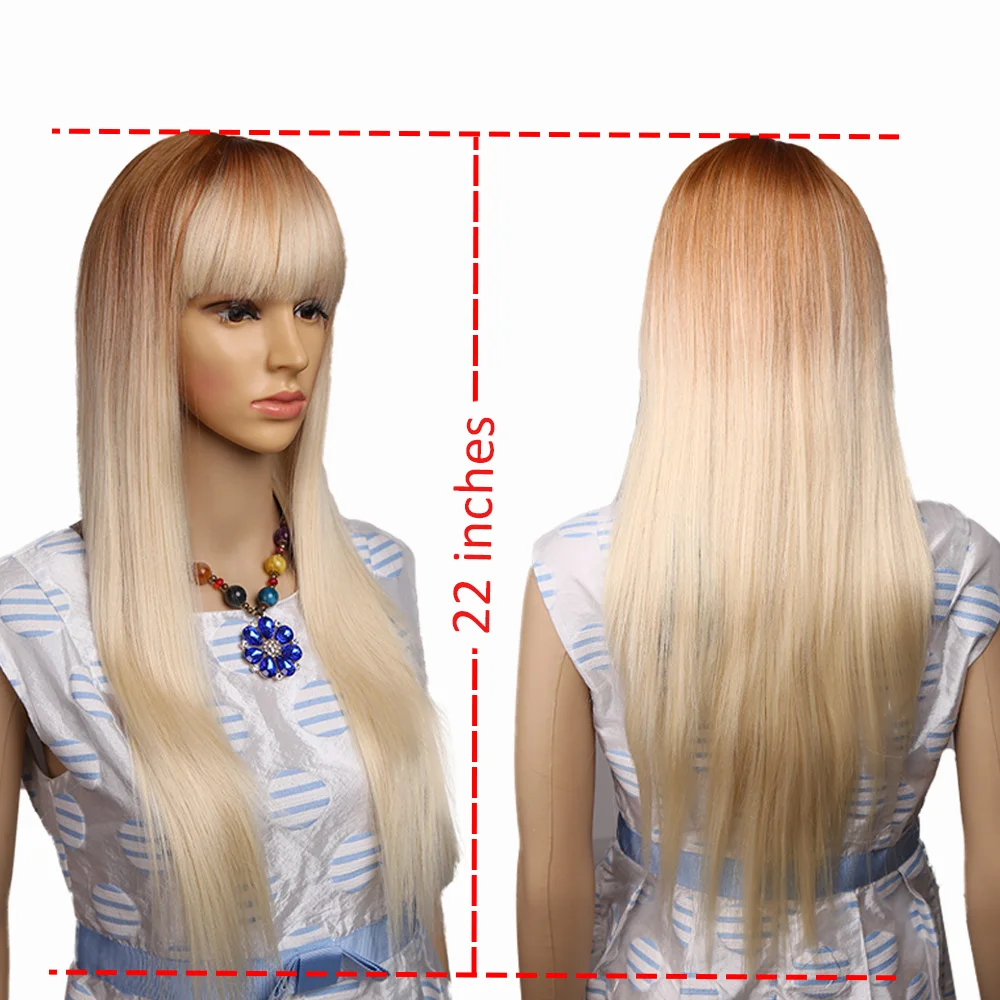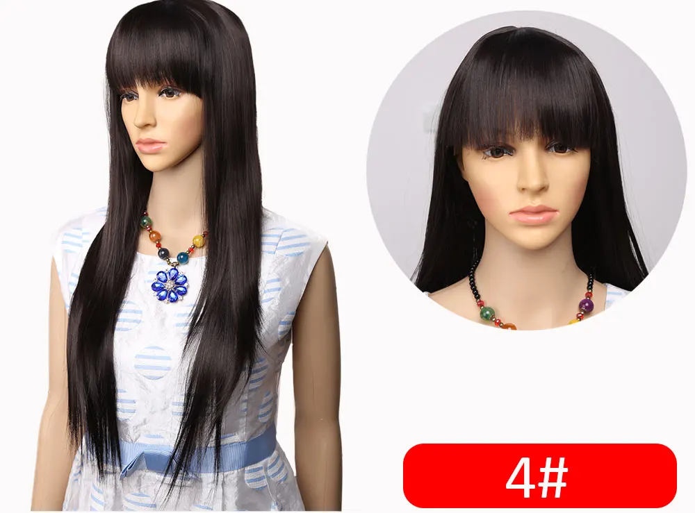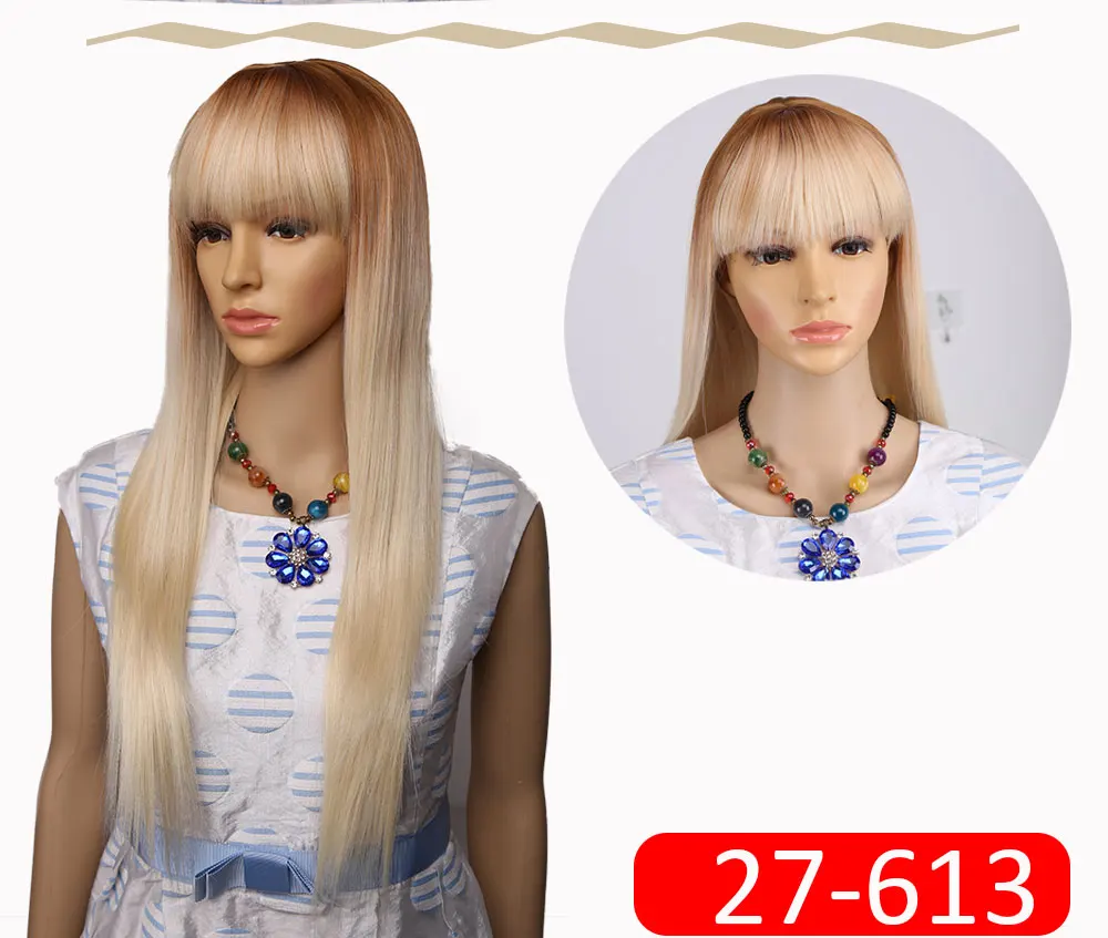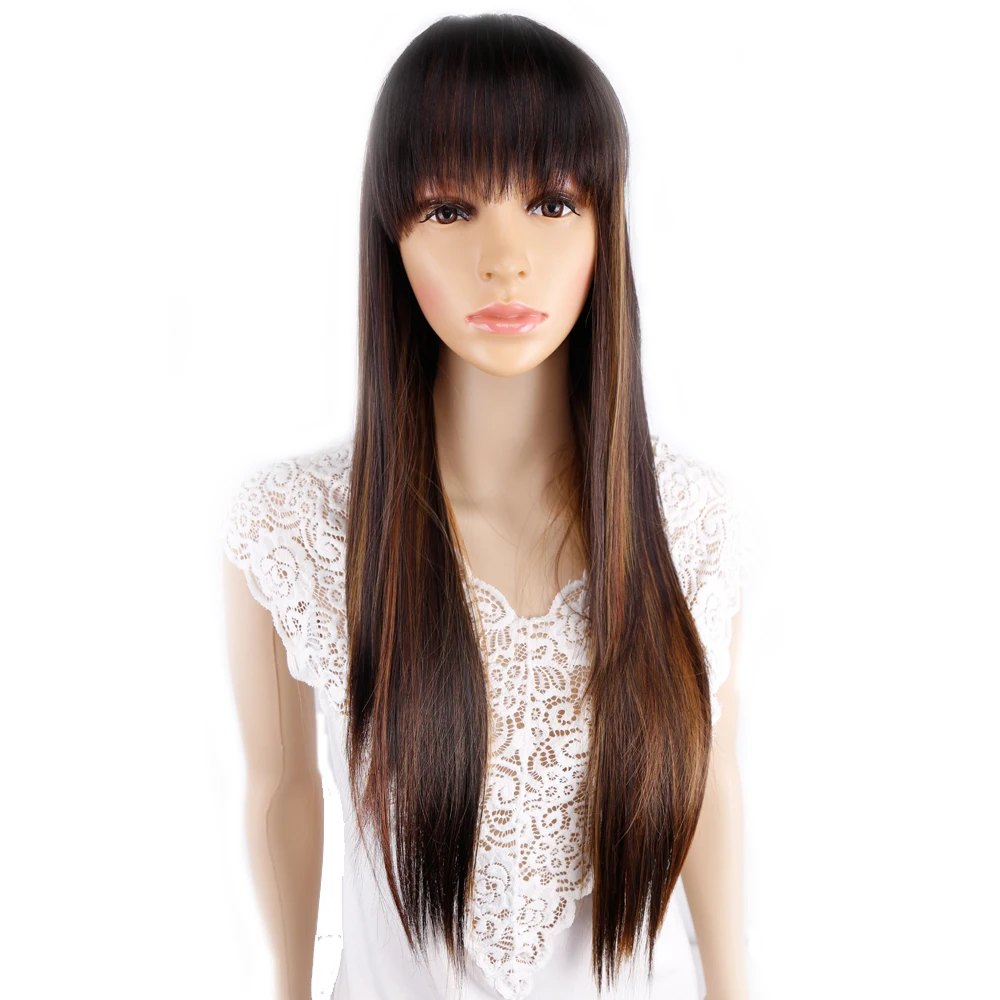 Синтетический женский шелковистый длинный прямой парик с челкой, черный парик, термостойкий парик из волос для женщин, светлые и коричневые парики с эффектом омбре, косплей