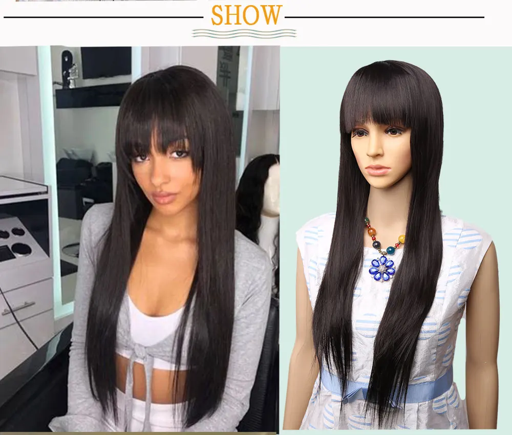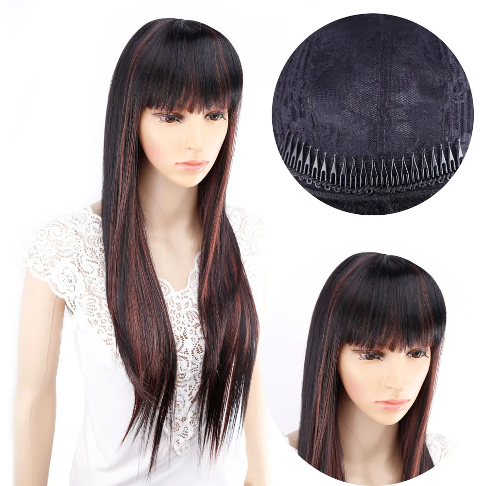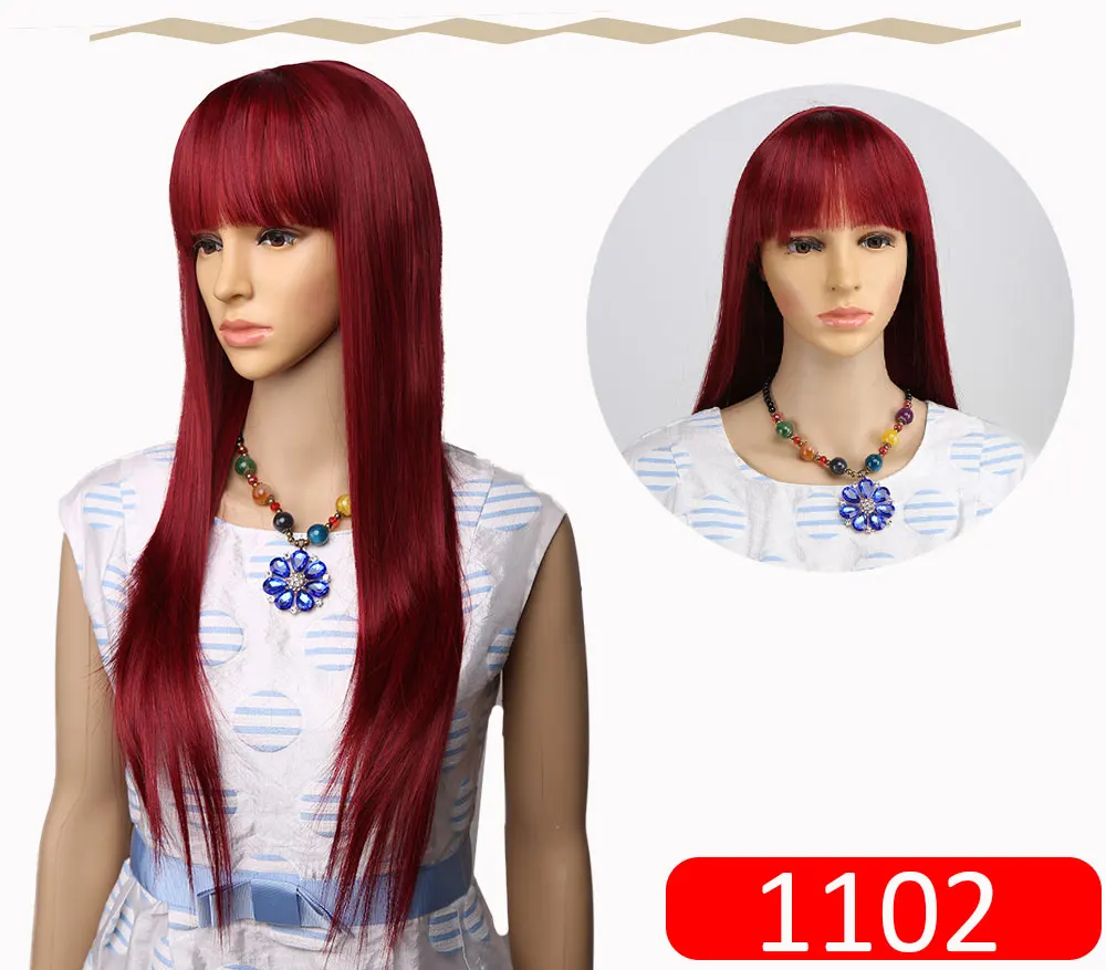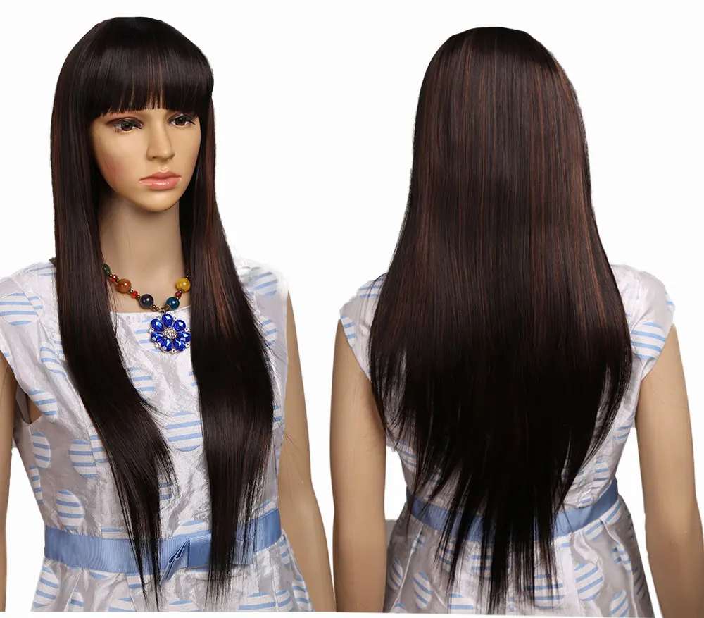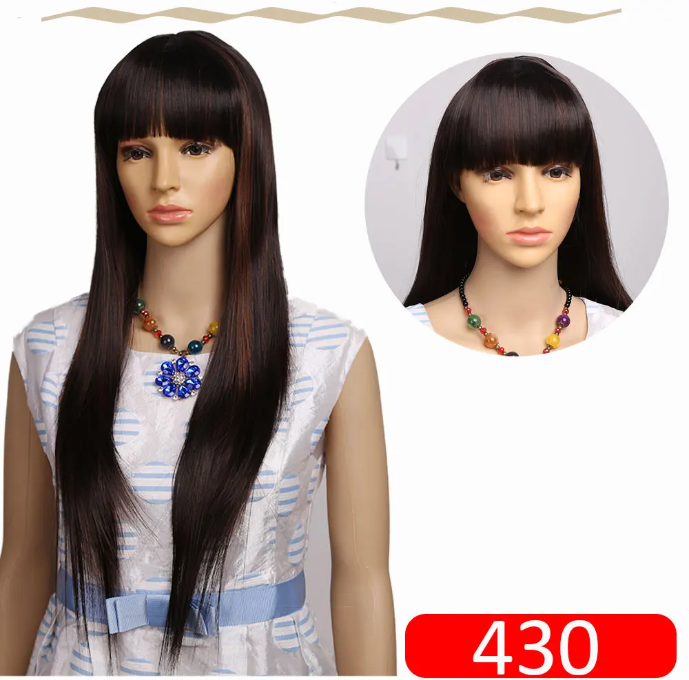 Синтетический женский шелковистый длинный прямой парик с челкой, черный парик, термостойкий парик из волос для женщин, светлые и коричневые парики с эффектом омбре, косплей