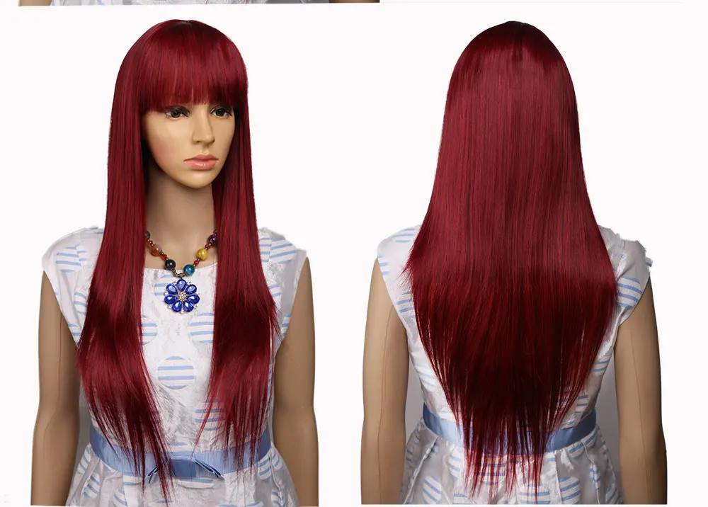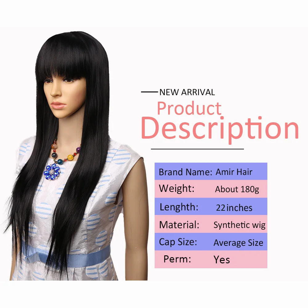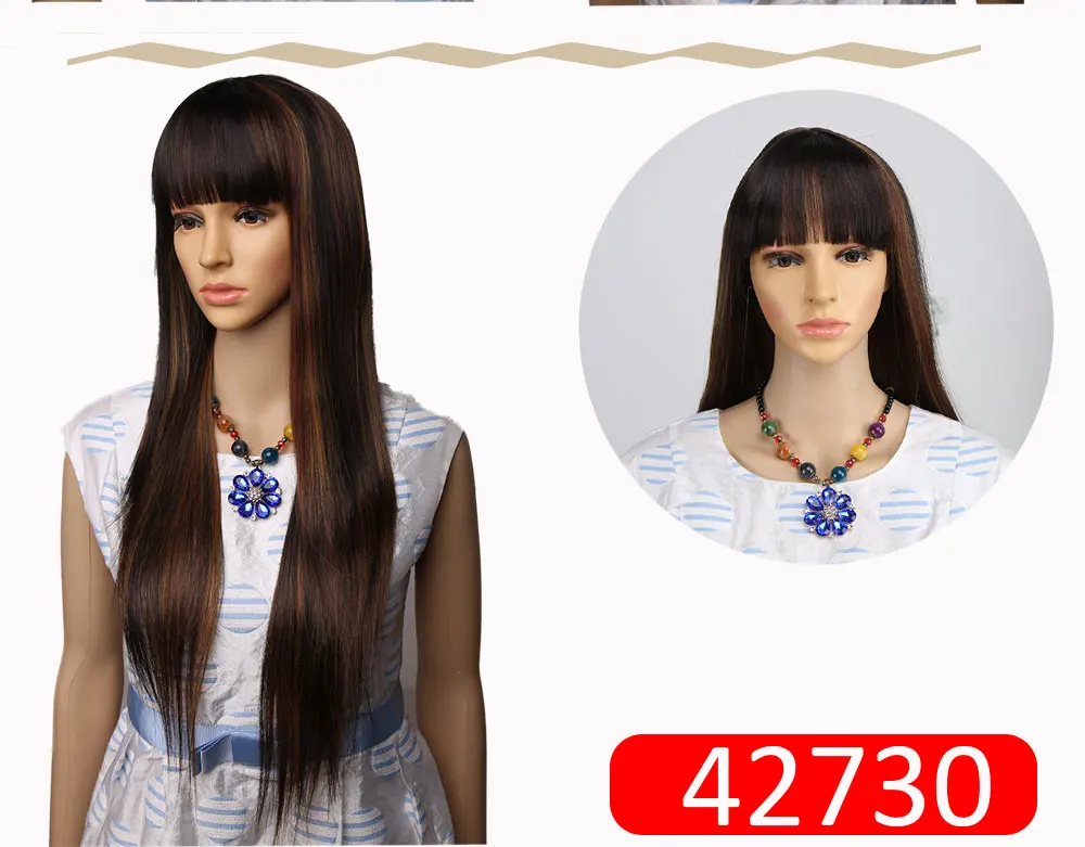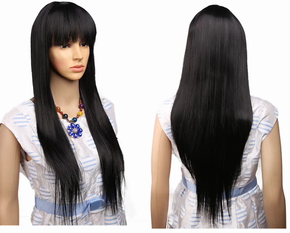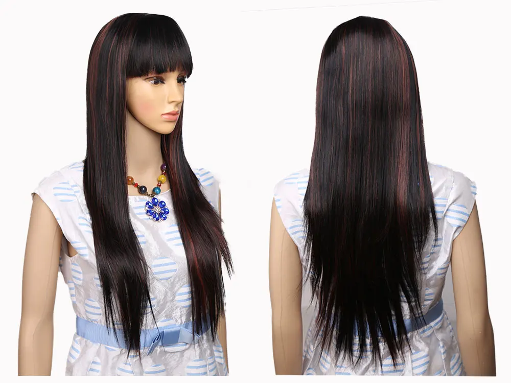 Синтетический женский шелковистый длинный прямой парик с челкой, черный парик, термостойкий парик из волос для женщин, светлые и коричневые парики с эффектом омбре, косплей